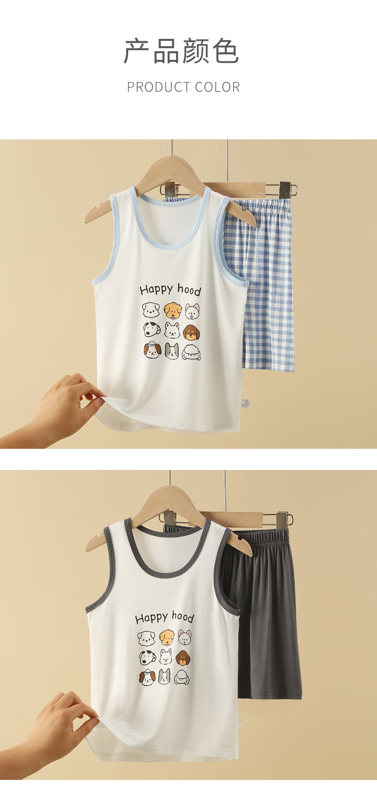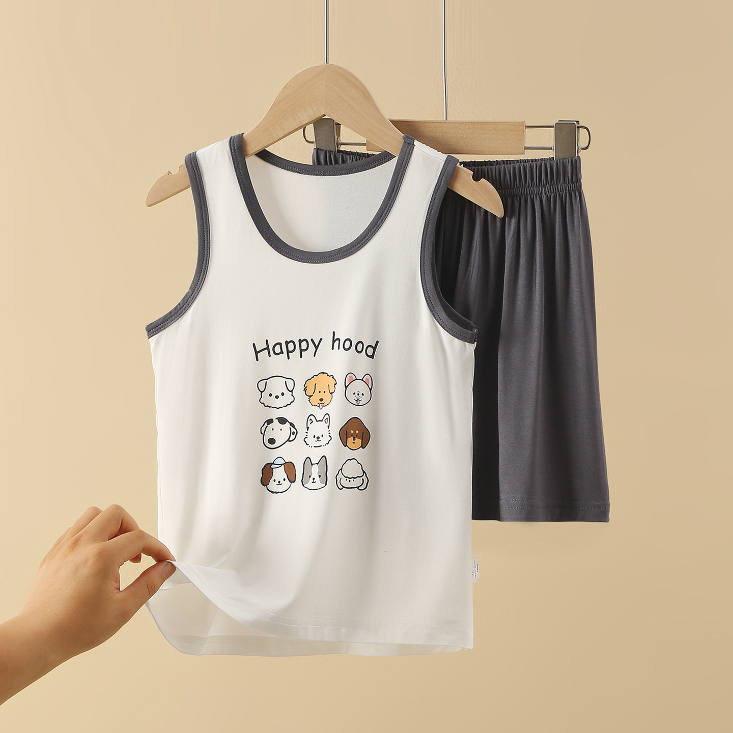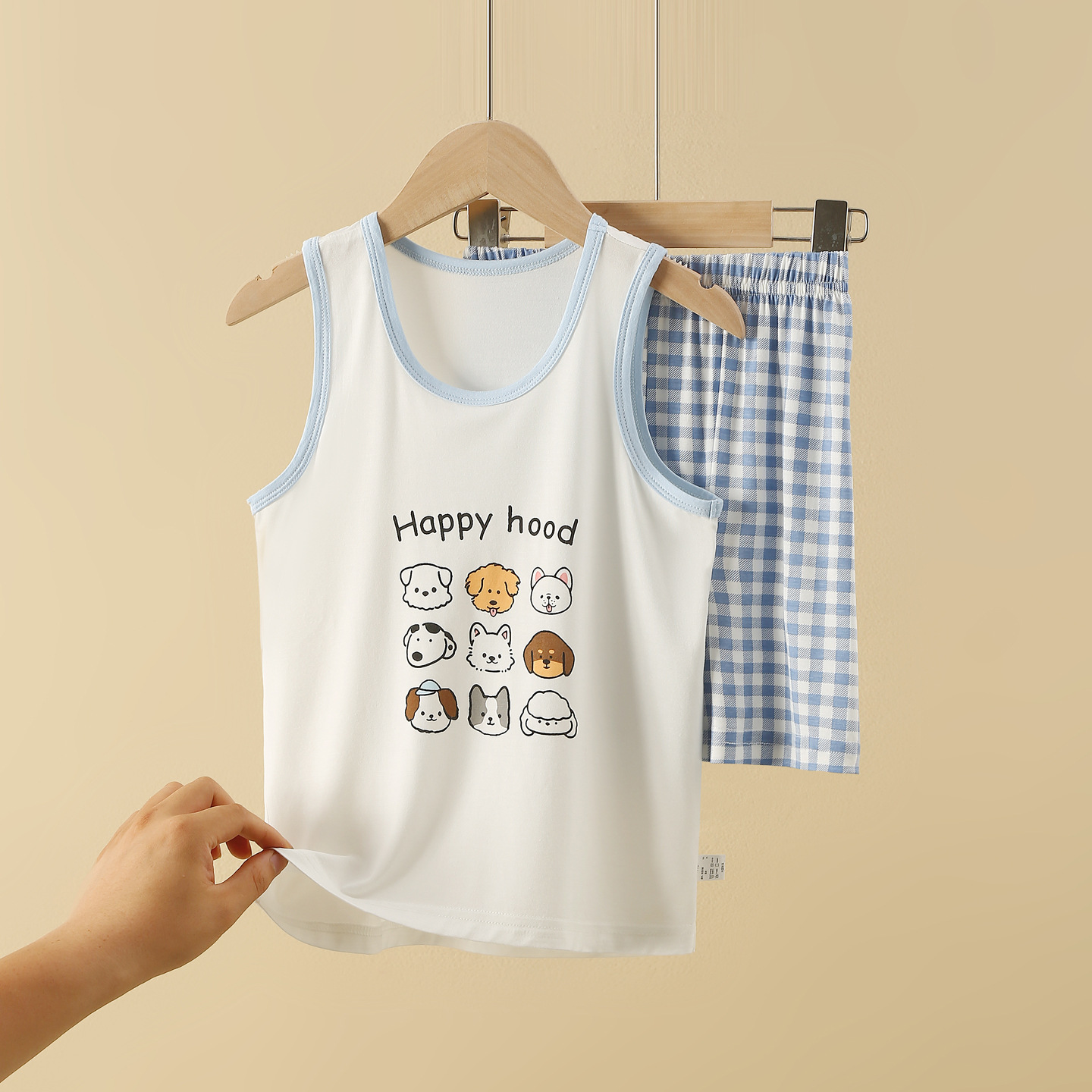어린이 조끼 세트 2025 여름 남아 여아 잠옷 중대형 어린이용 아이스 실크 얇은 홈웨어