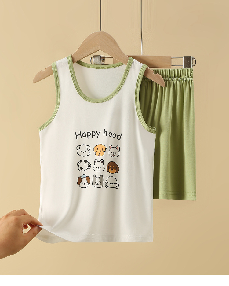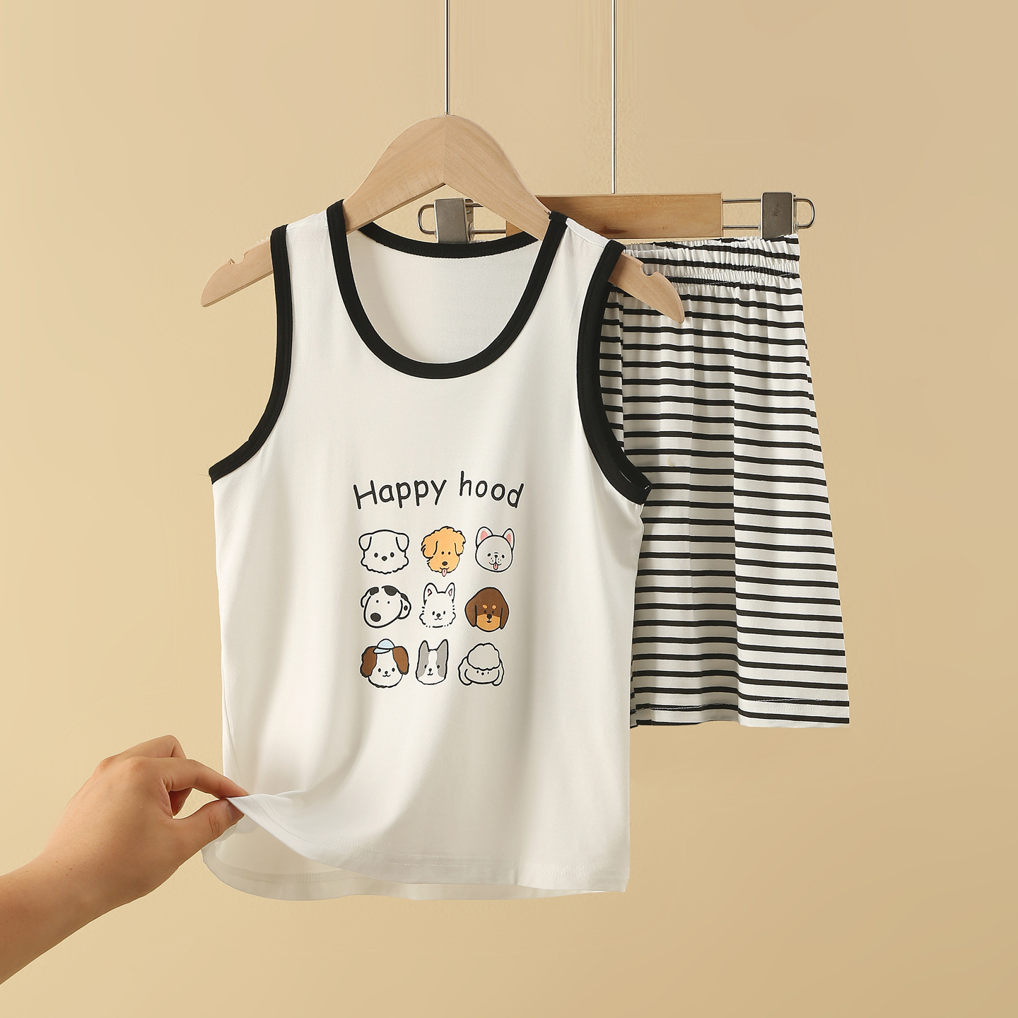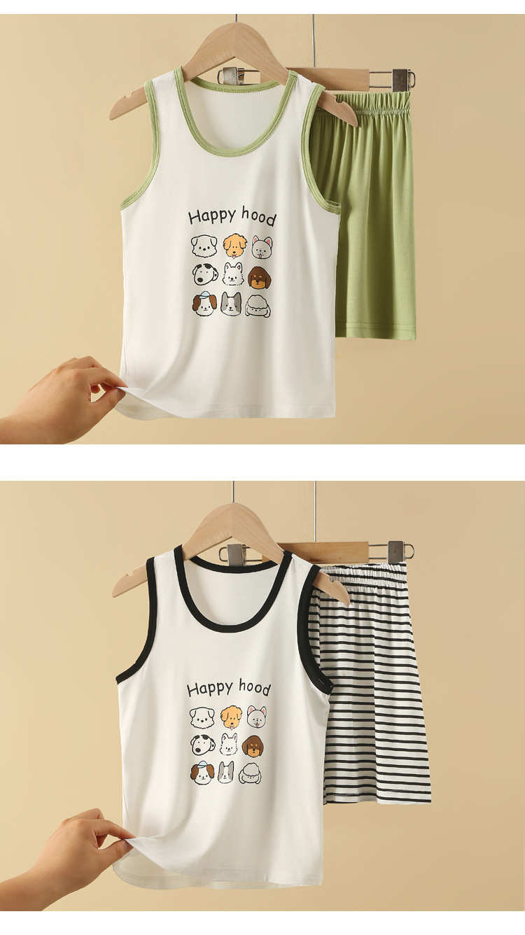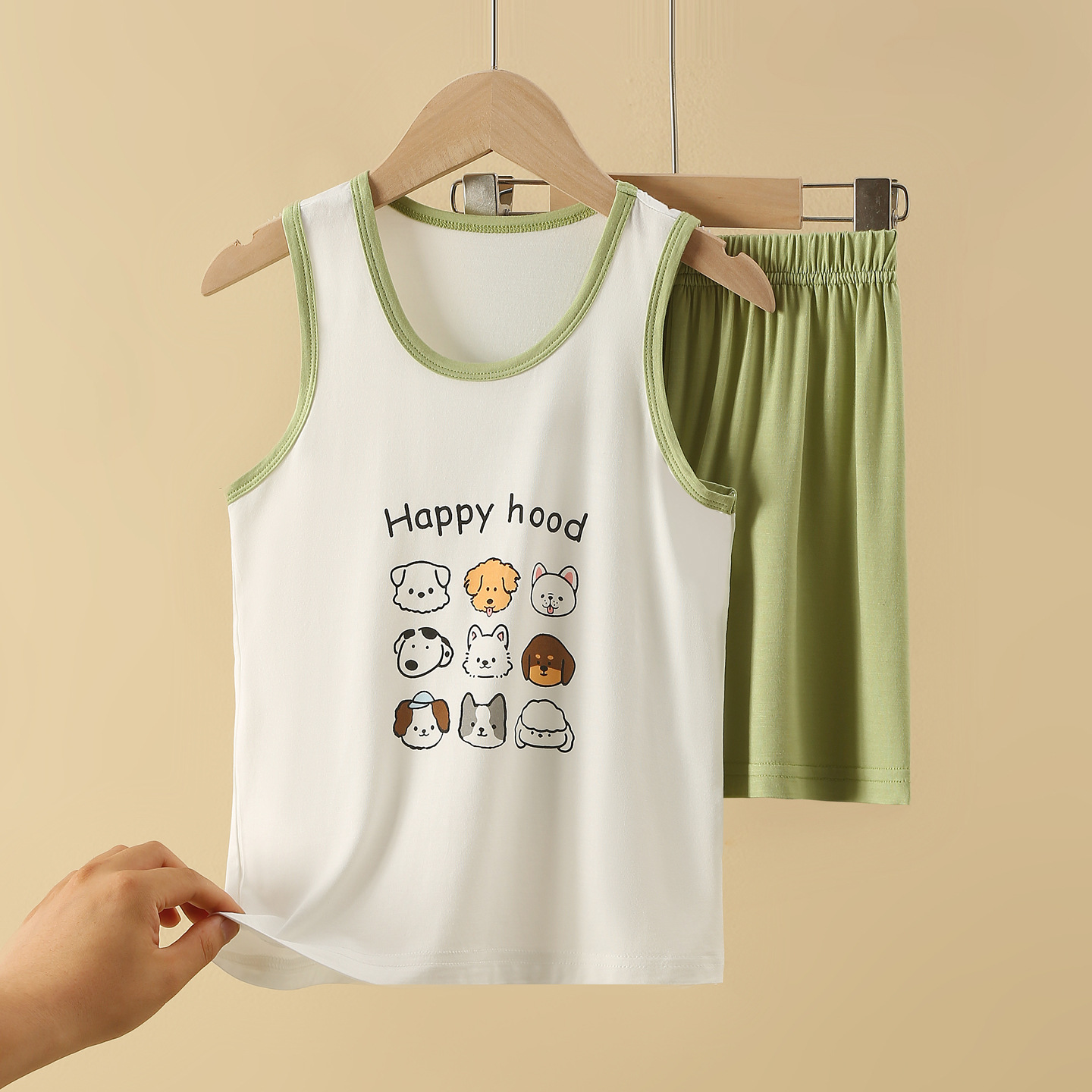 어린이 조끼 세트 2025 여름 남아 여아 잠옷 중대형 어린이용 아이스 실크 얇은 홈웨어