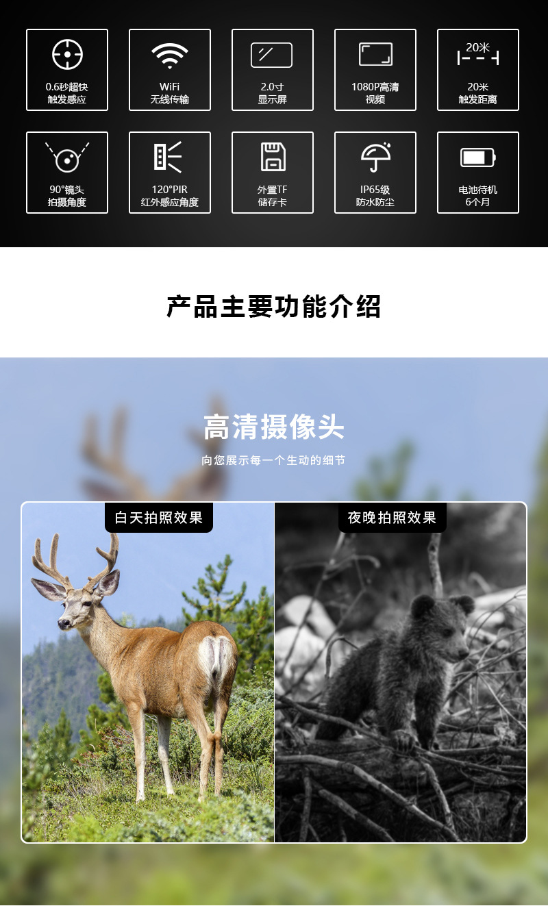 공장 개인 모델 적외선 감지 카메라 야외 고화질 4K 사냥 카메라 동물 추적 카메라 위장스토어 가기