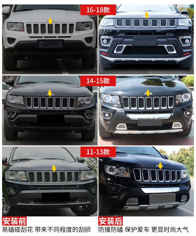 11-17 Jeep Compass 범퍼 전면 및 후면 범퍼에 적합 원래 모델 수정 충돌 방지스토어 가기