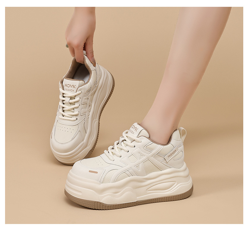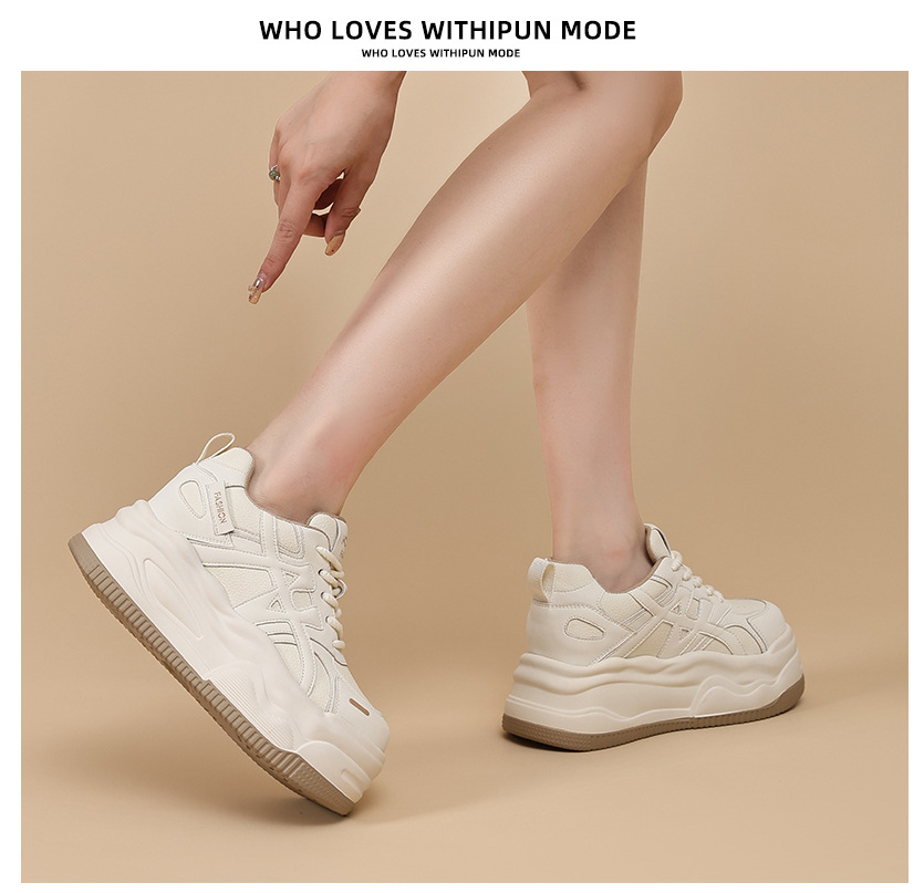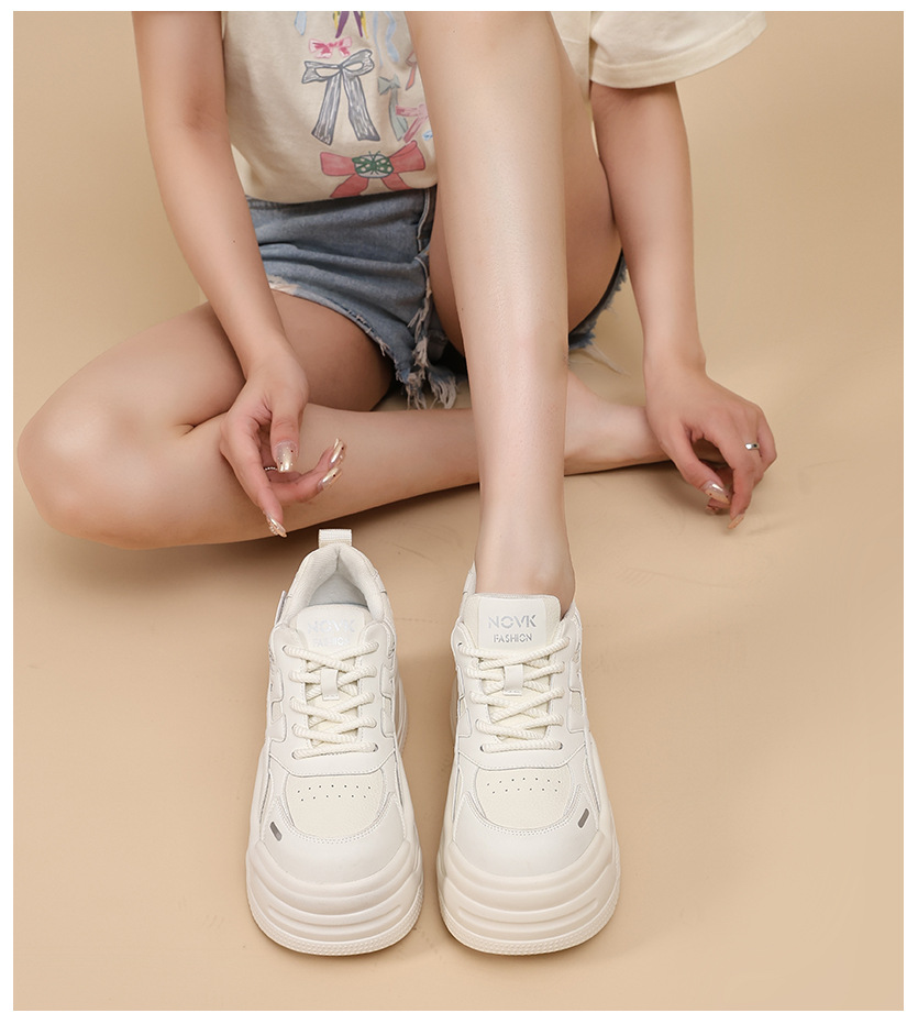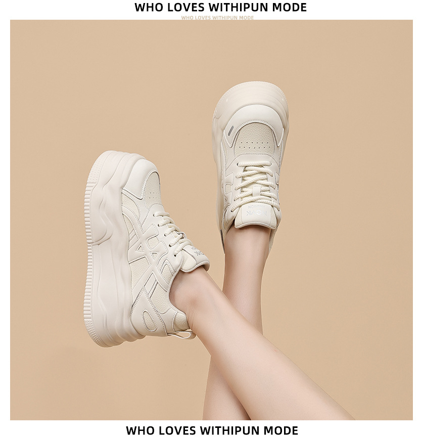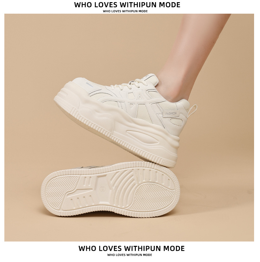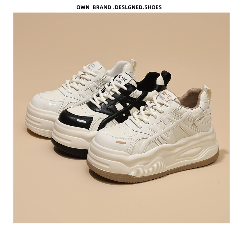 2025년 신상 초가을 여성화, 두꺼운 밑창의 흰색 신발, 편안함, 다용도, 통기성 신발, 컬러 매칭이 가능한 캐주얼 운동화