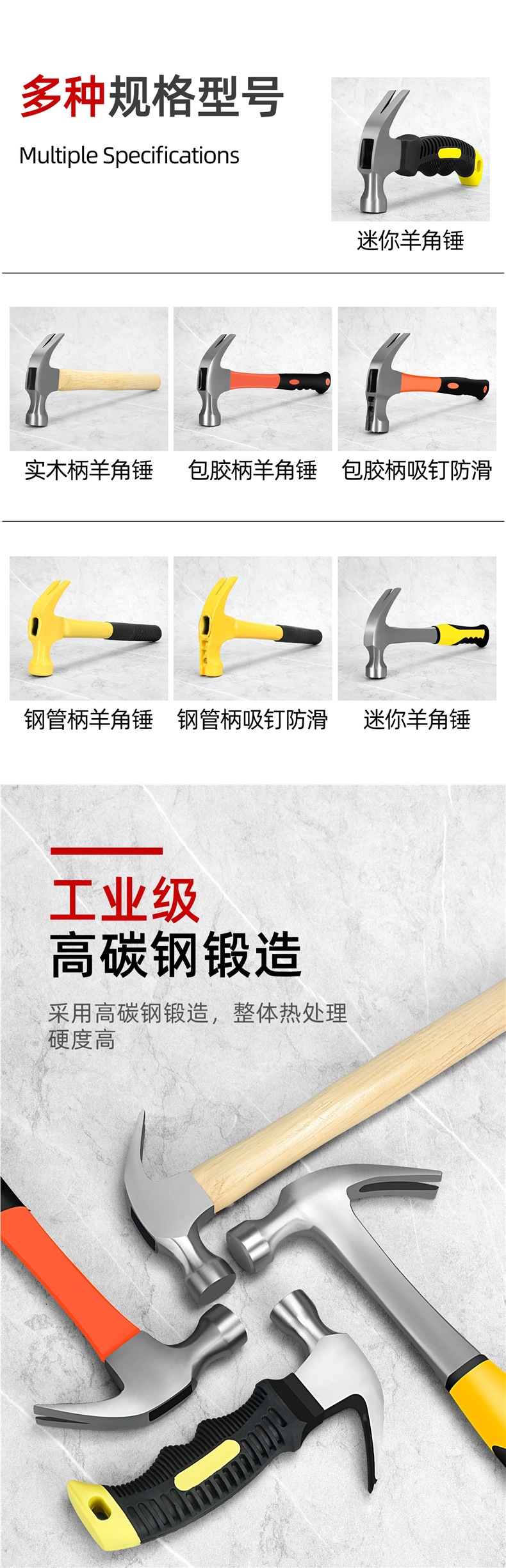 • 못을 빨아들이는 미끄럼 방지 강관 손잡이 집게 망치(0.5KG)