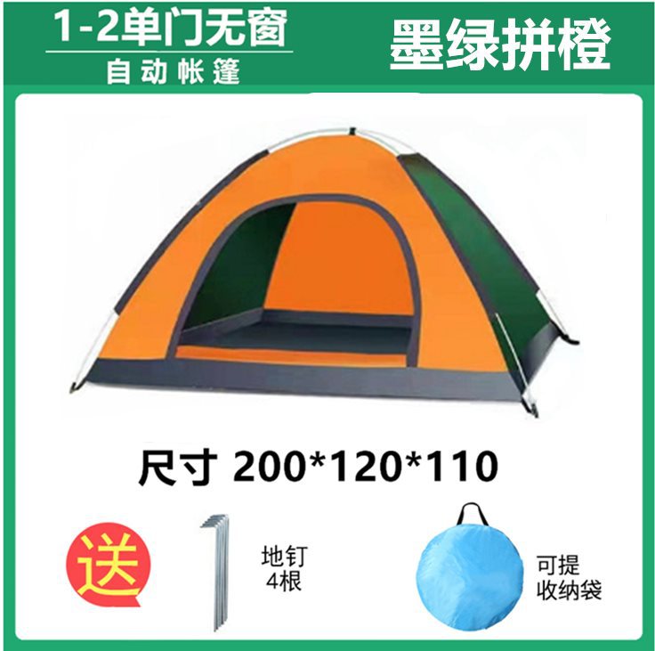 • 1-2인용 단일 문, 창문 없음, 진한 녹색 및 주황색(단일 텐트 0