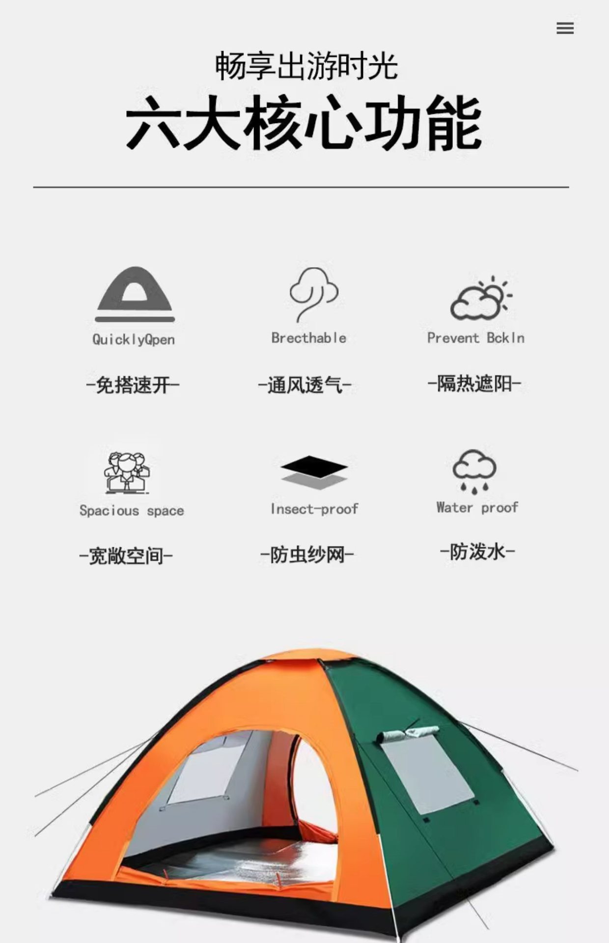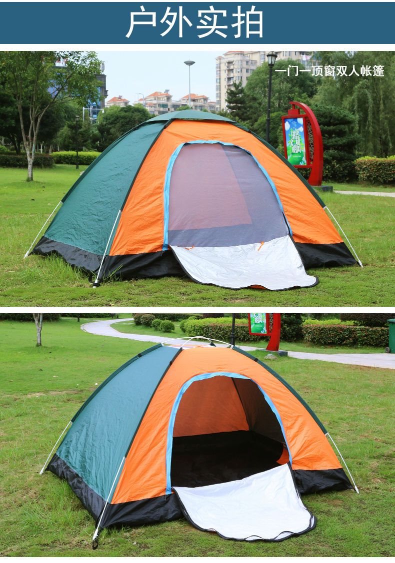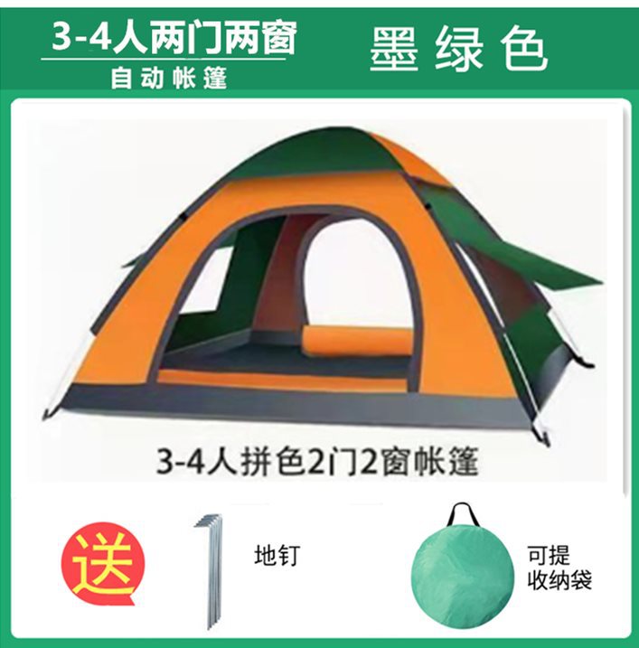 • 3~4인용 양문형 짙은 녹색과 주황색(싱글 텐트)