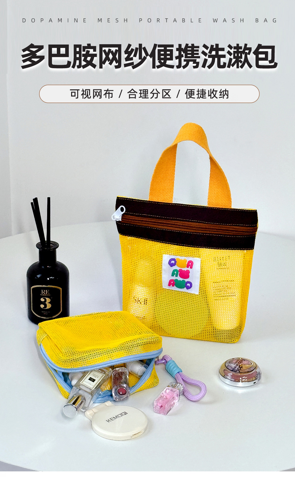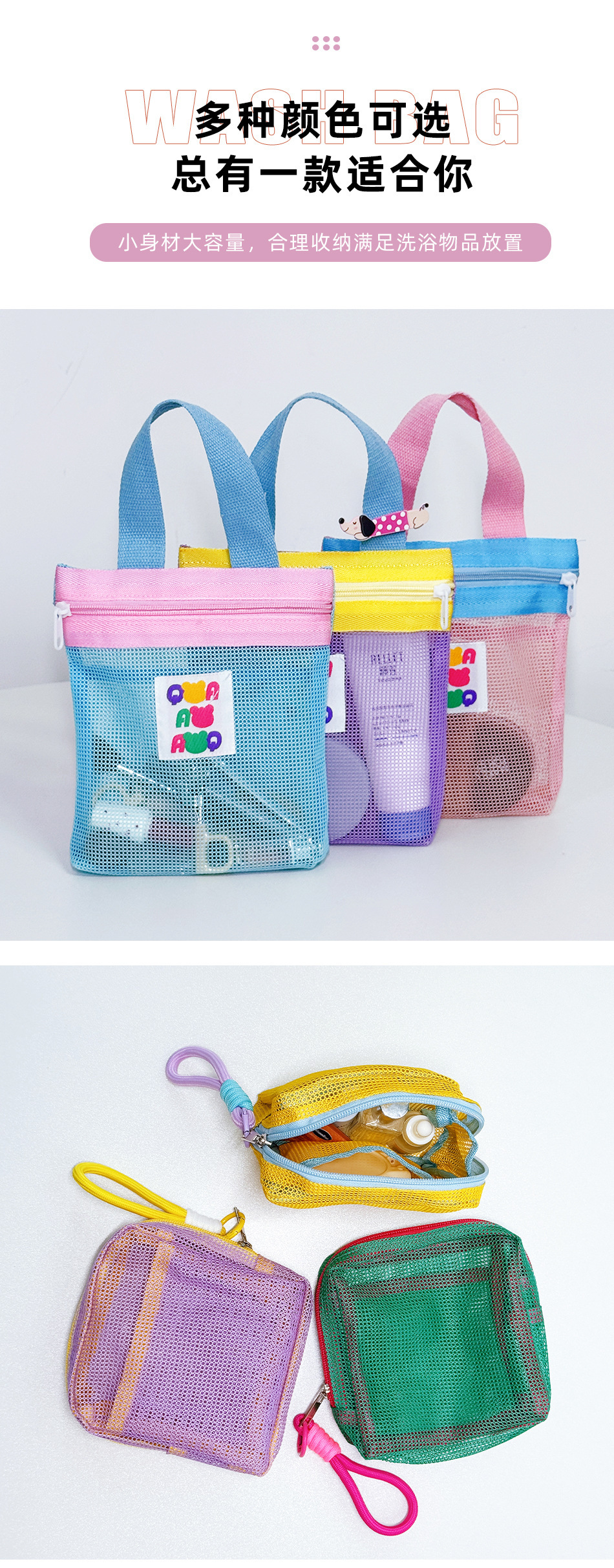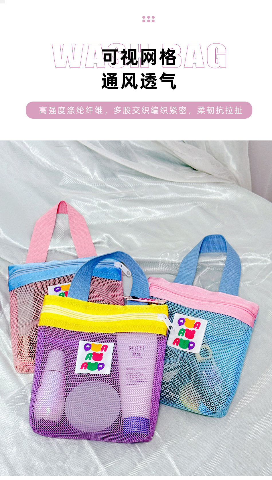휴대용 메쉬 세면도구 보관함, 욕조, 중공 대용량 휴대용 천, 배수구, 수영 메이크업, 해변스토어 가기
