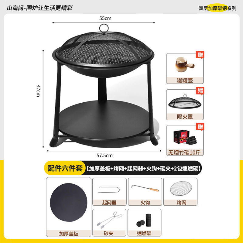 • 업그레이드된 2층 난로 기본세트 + 무연대나무숯 5kg개 + 방화커버