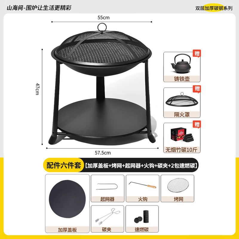 겨울 난로에서 차를 끓이고 실내에서 난로로 따뜻하게 유지하고 야외 바베큐 그릴, 집 안뜰 화로, 바베큐 테이블 그릴스토어 가기