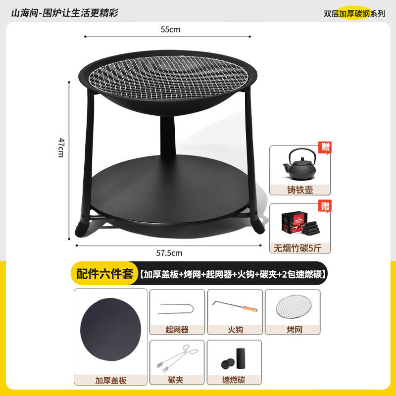 • 업그레이드된 2층 난로 기본세트 + 무연대나무숯 2.5kg개 + 방화커버