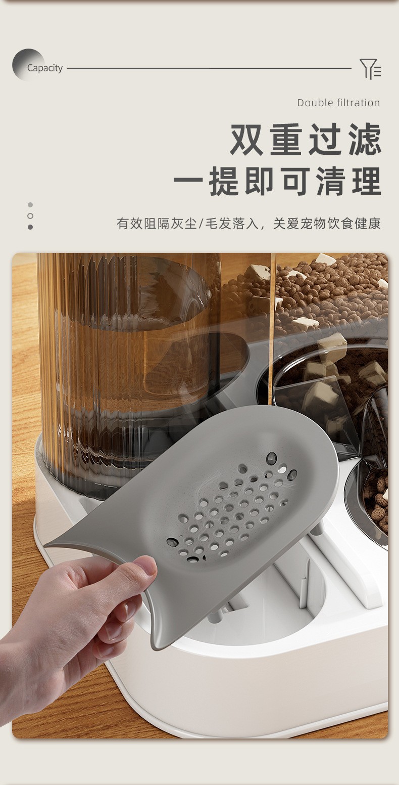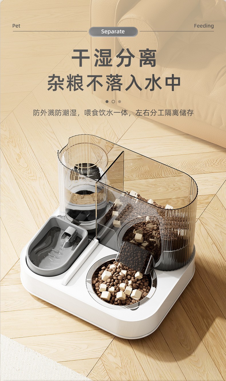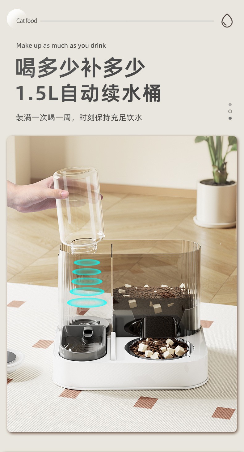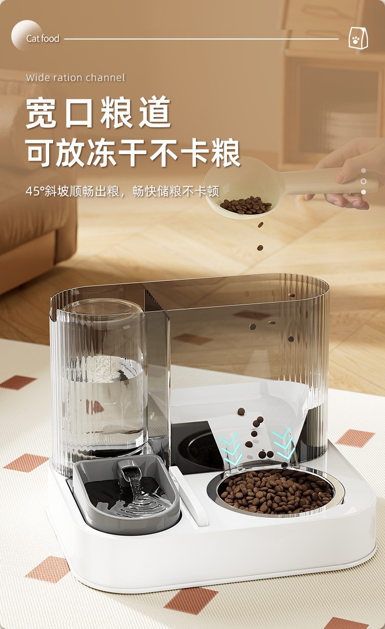 애완동물 음수 및 사료 저장 대용량 물통 고양이 강아지 무소음 고양이 음수 겸용 이중 그릇 고양이 그릇 강아지 그릇