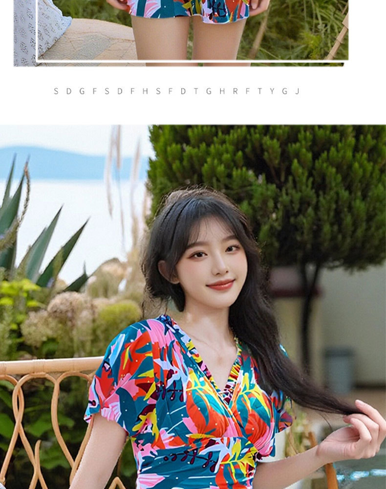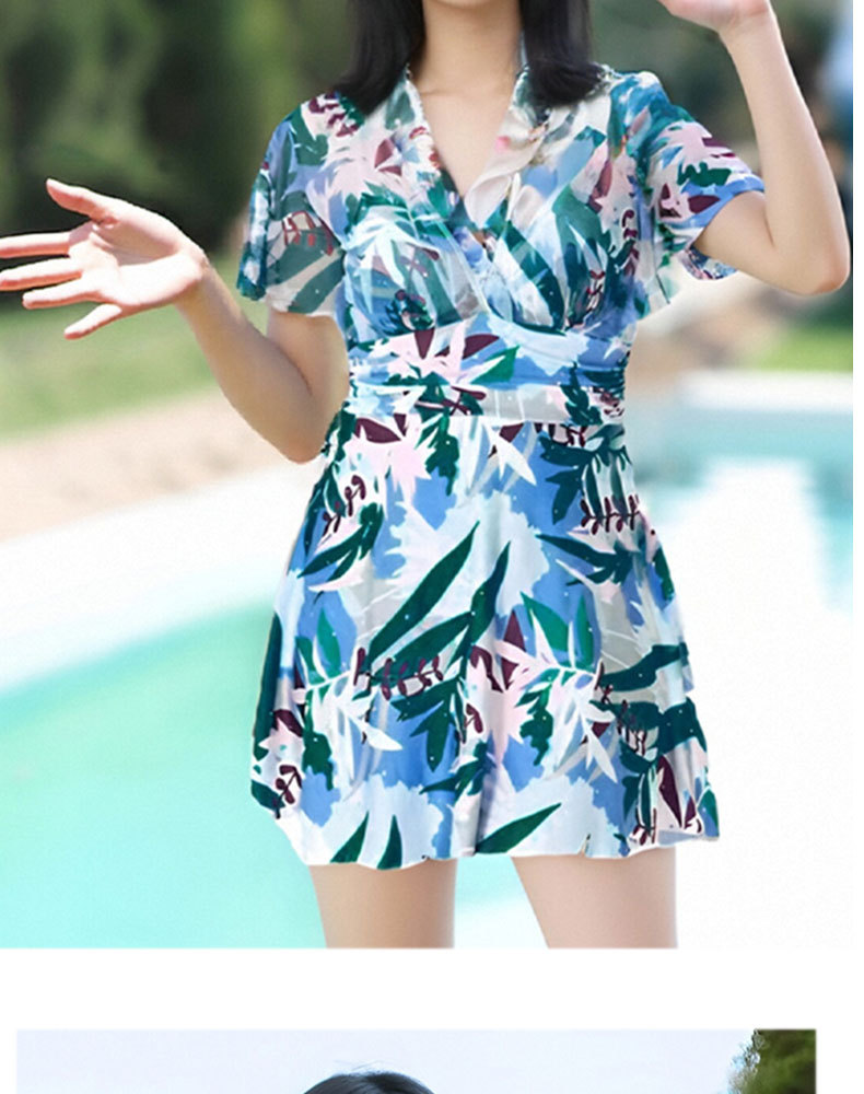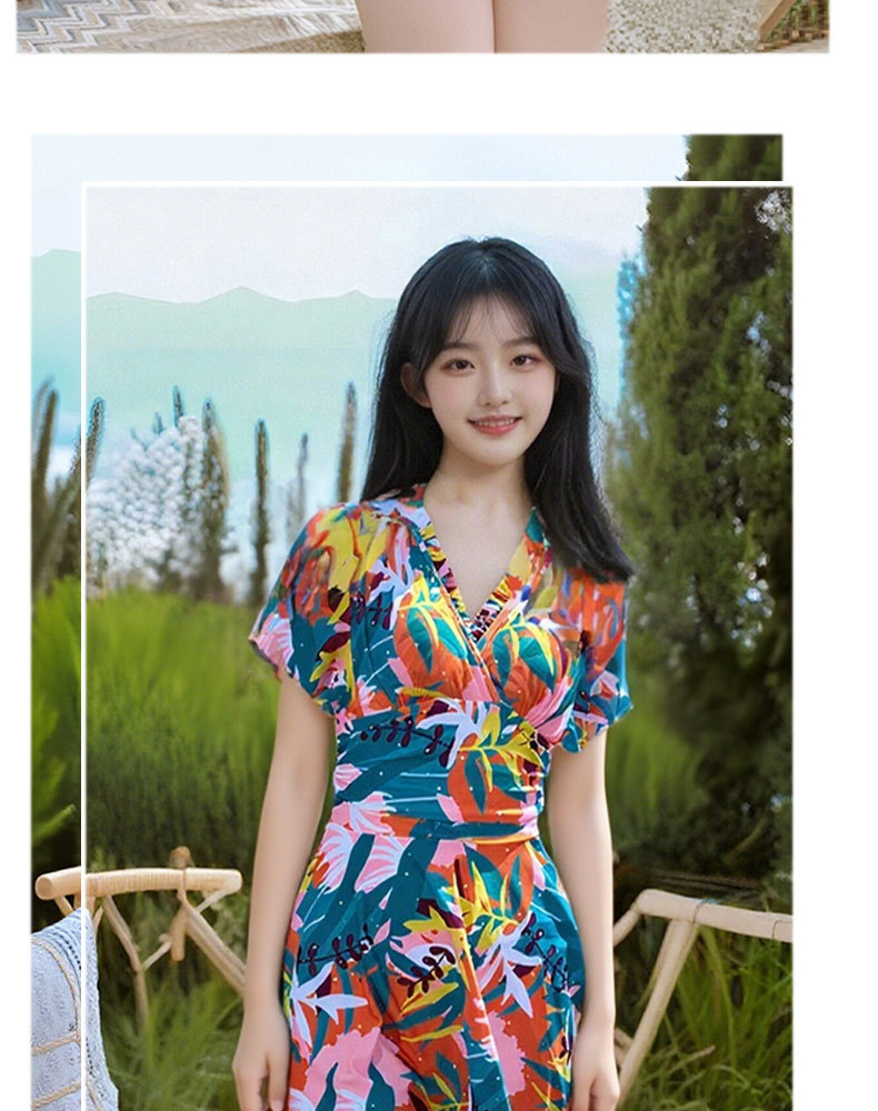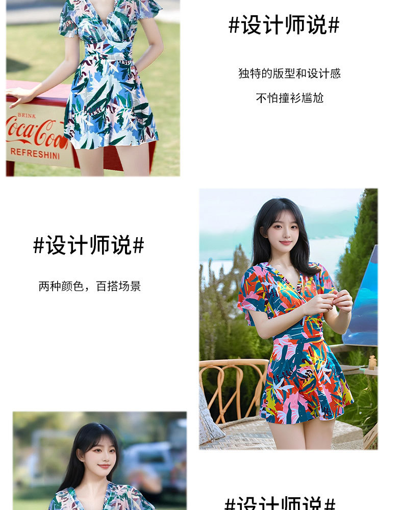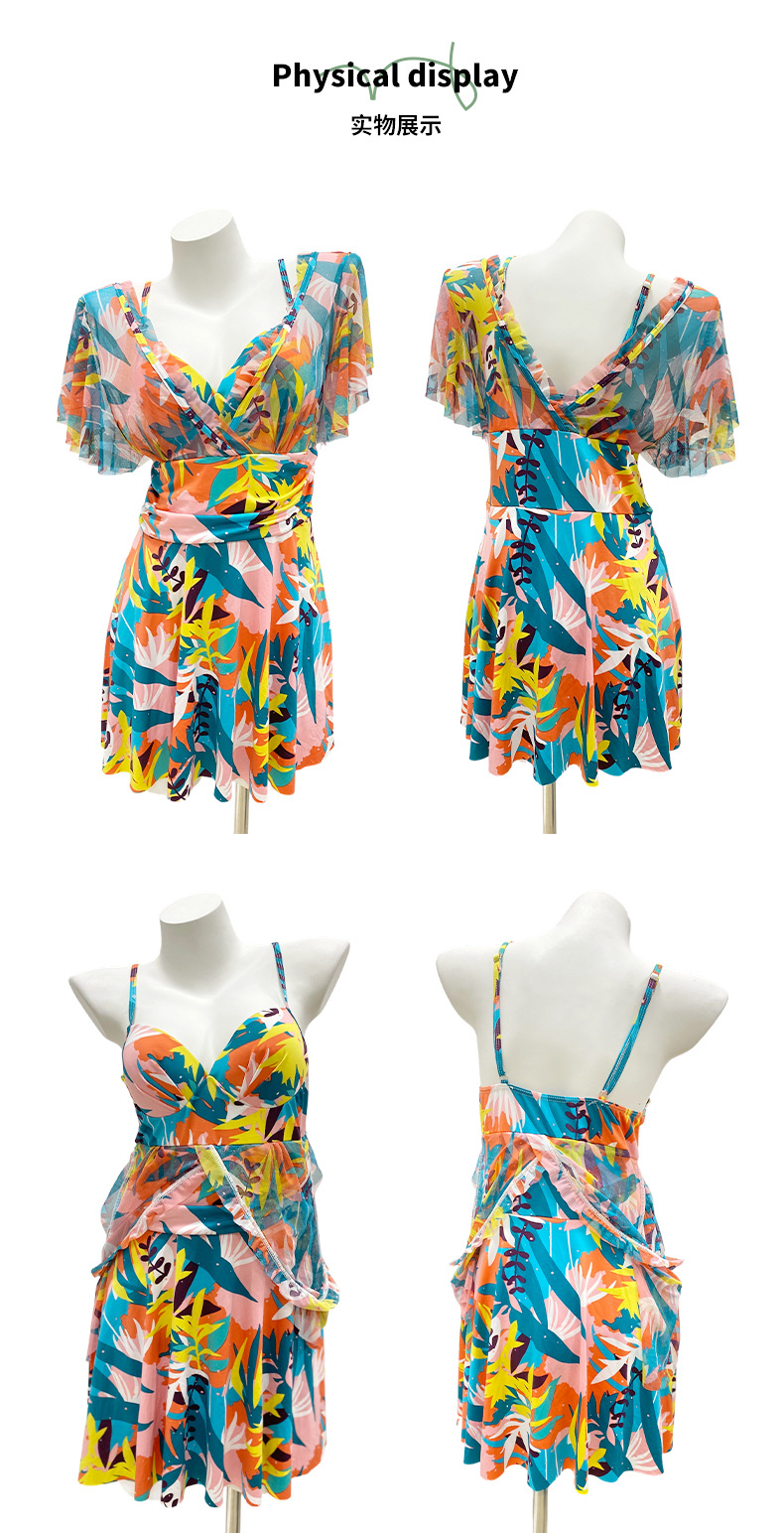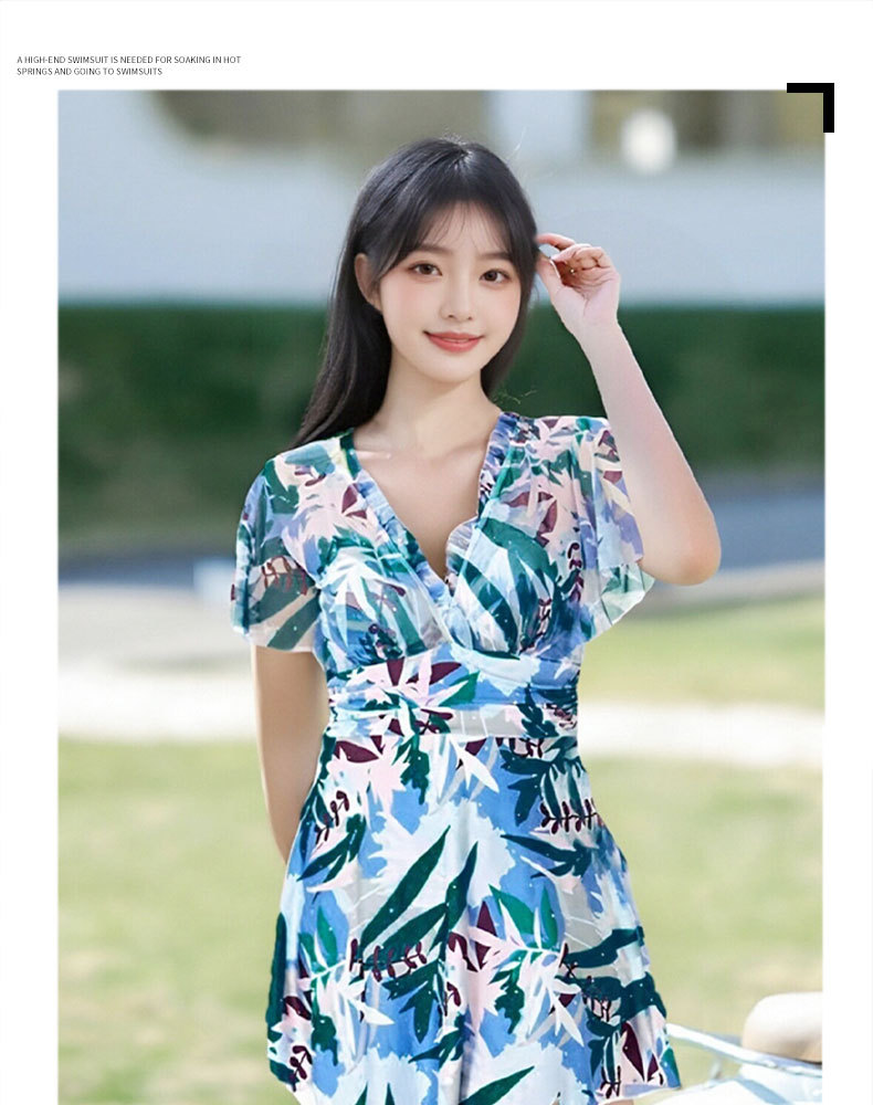 여성용 수영복 2025 새로운 핫 스타일 하이 엔드 기질 꽃무늬 스커트 슬리밍 보수적 인 살 커버 비치 수영복스토어 가기