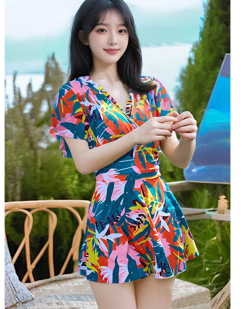 여성용 수영복 2025 새로운 핫 스타일 하이 엔드 기질 꽃무늬 스커트 슬리밍 보수적 인 살 커버 비치 수영복