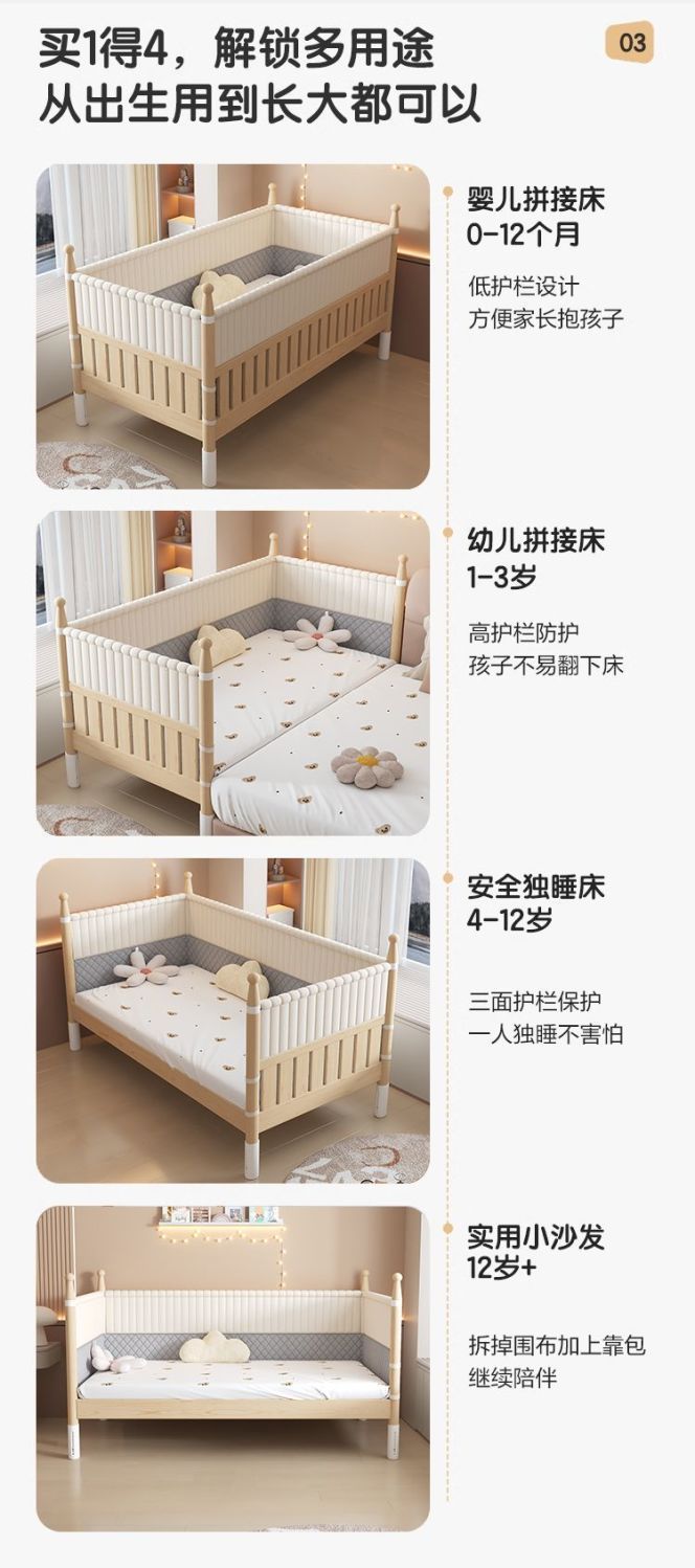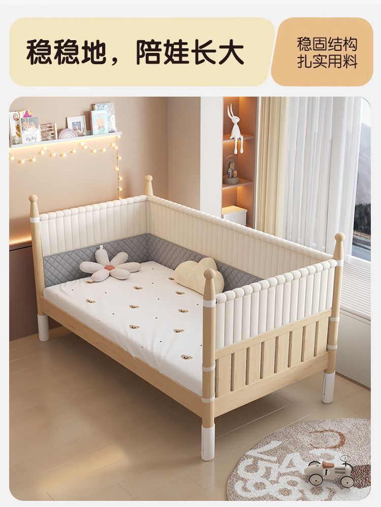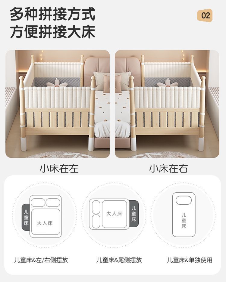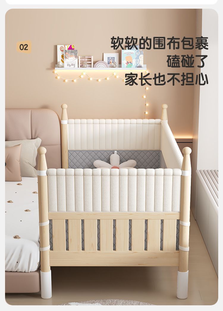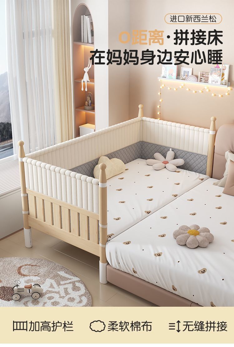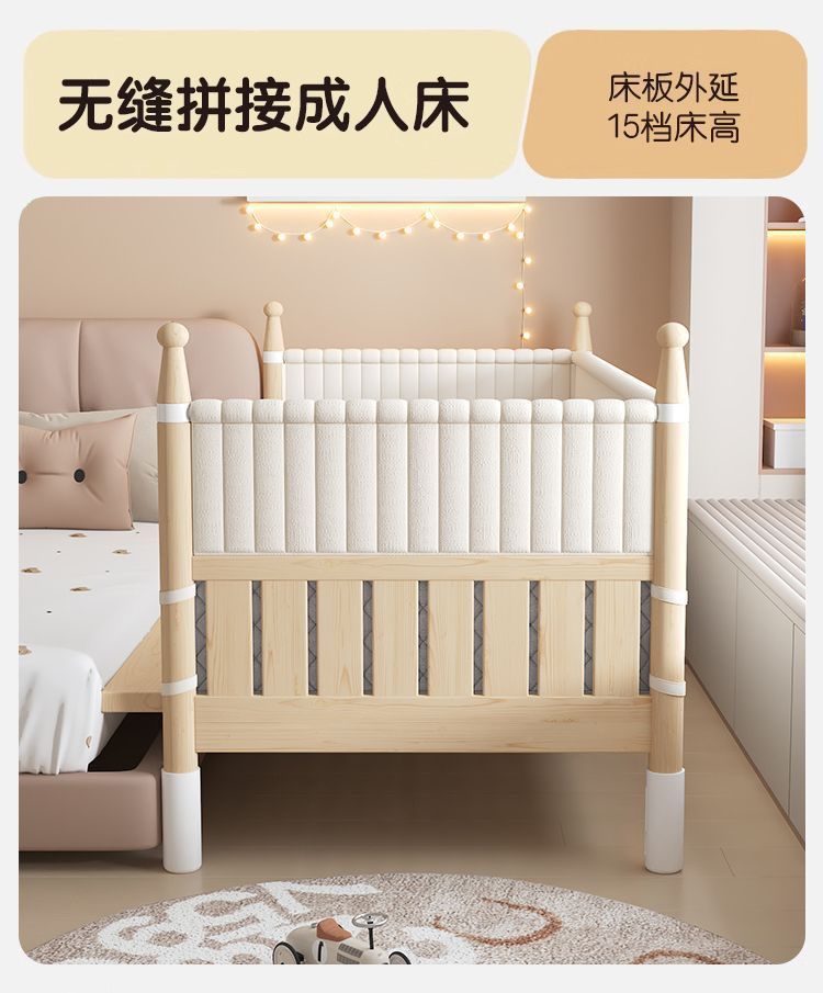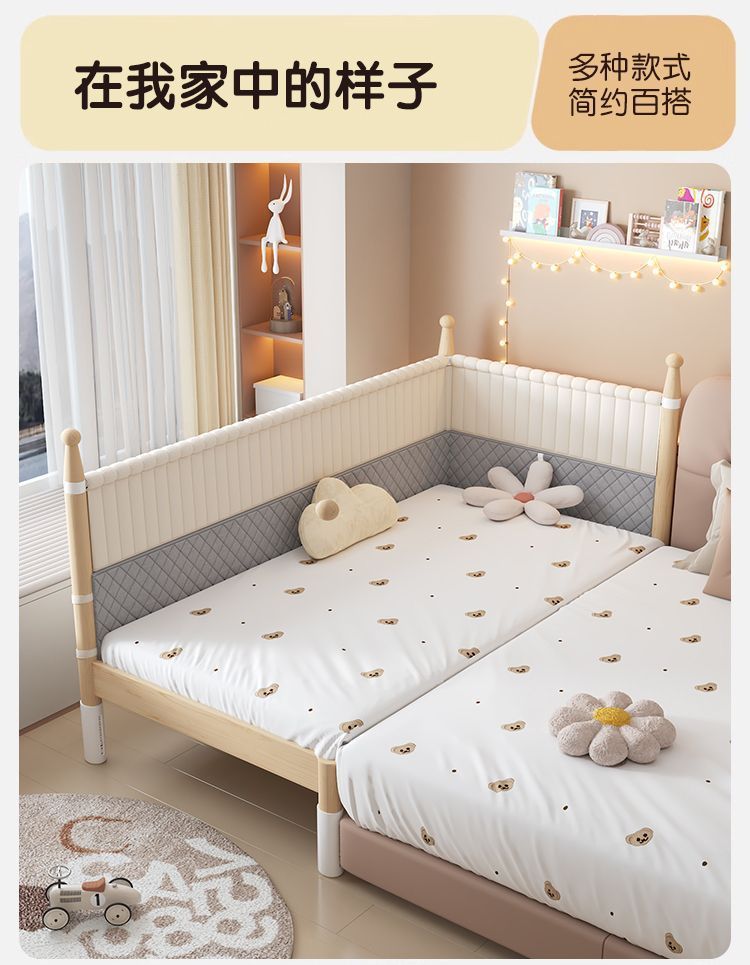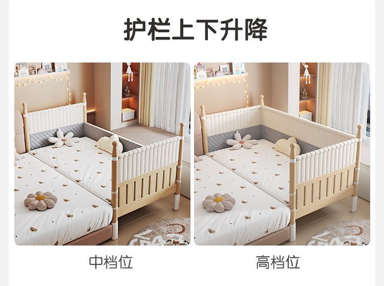 어린이용 접합 침대, 넓은 침대 옆 아기 침대, 성인이 잠을 잘 수 있는 높은 난간, 리프팅 및 조절 가능한 유아용 침대