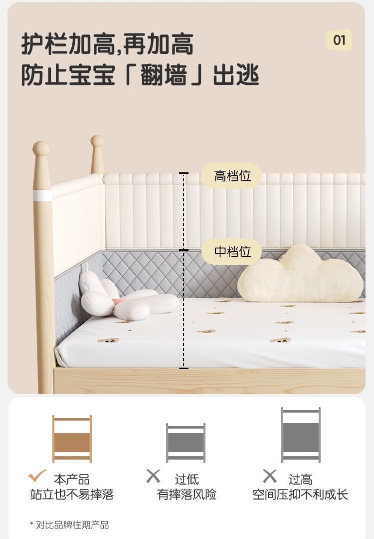 • 삼면 하이 가드레일 + 6cm 코코넛 야자 라텍스 매트리스 + 프리 더치 벨벳 베드사이드
