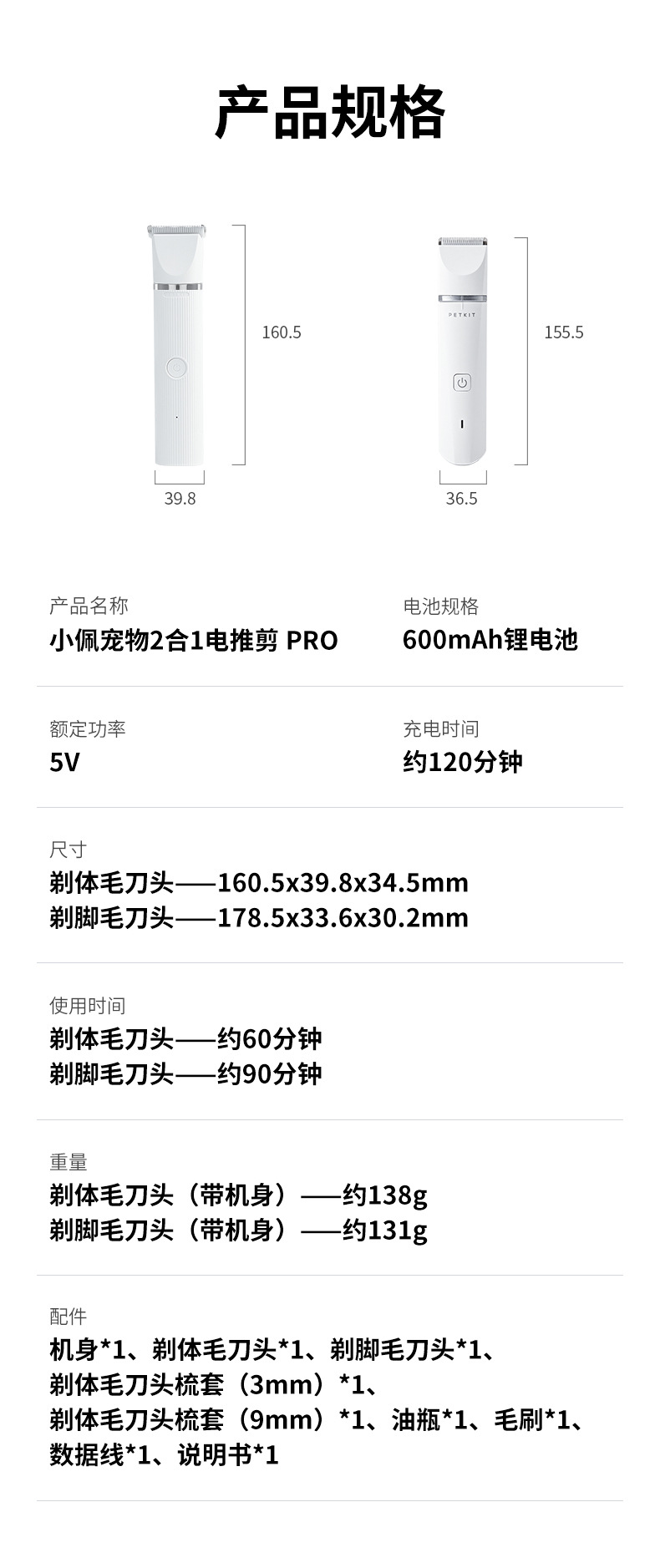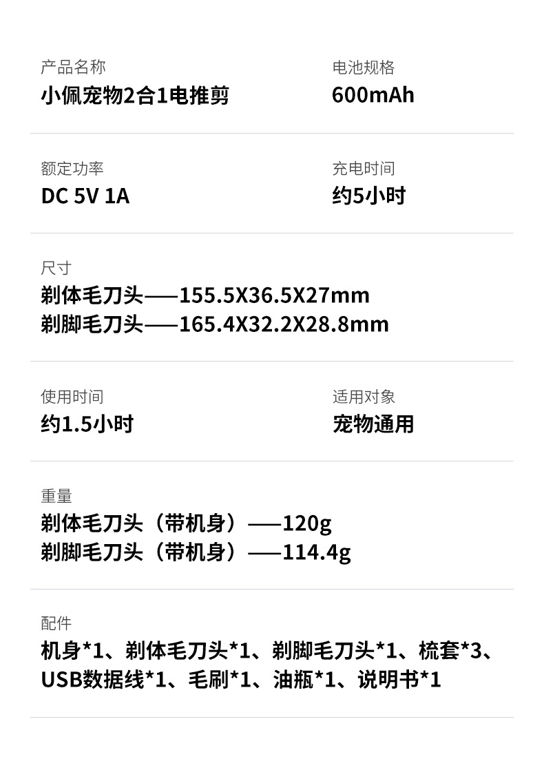 Xiaopei 2-in-1 애완 동물 전기 이발기 개 면도기 고양이 발 면도기 고양이 발 헤어 트리머 전기 이발기