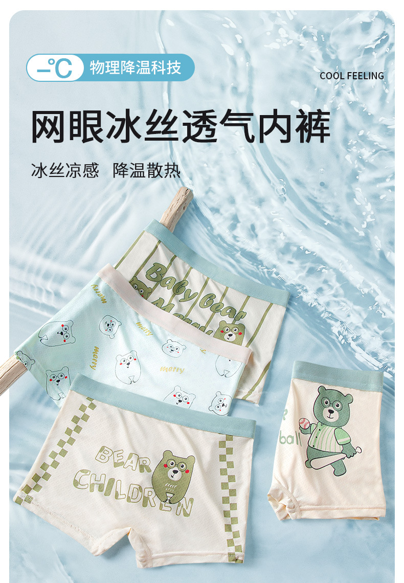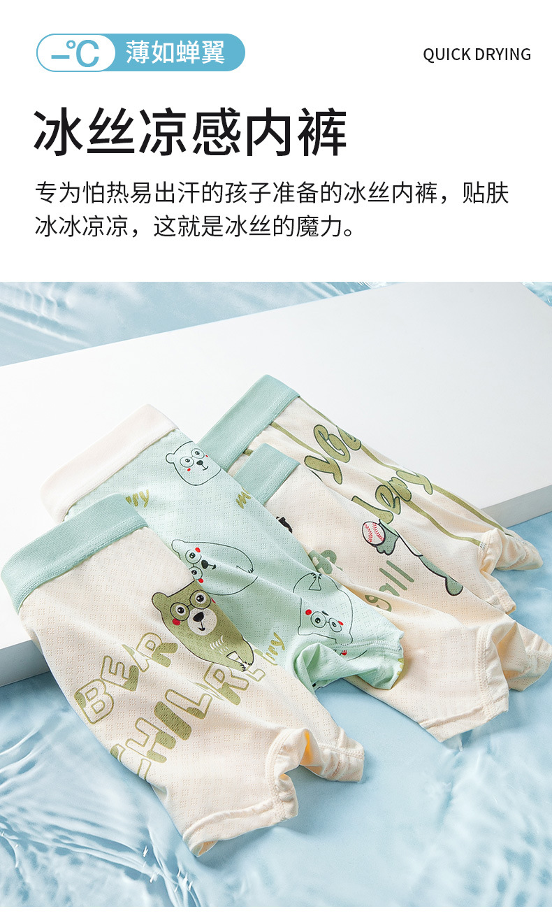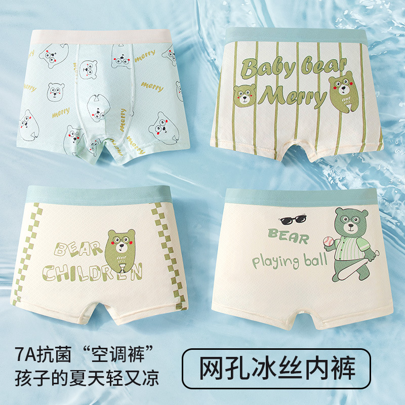어린이 속옷 소년 얼음 실크 여름 얇은 복서 스타일 중형 및 대형 어린이 소년 통기성 메쉬 아기 복서 팬티스토어 가기