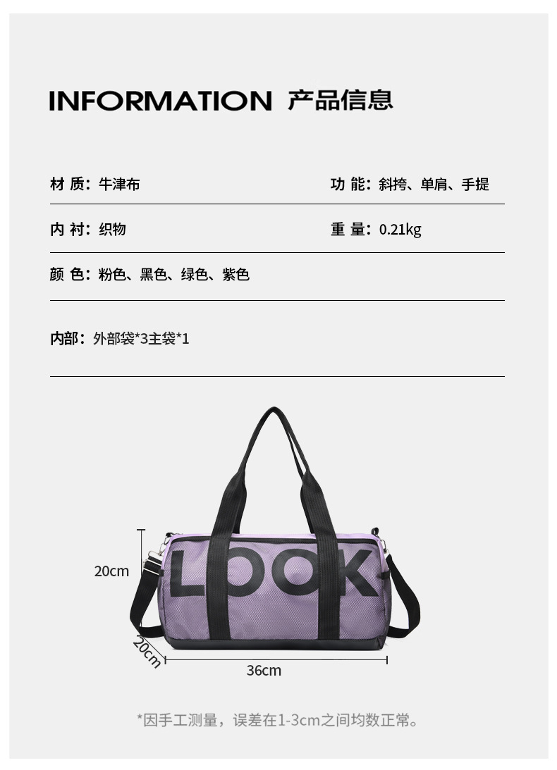 여성용 신형 여행가방, 발수 스포츠 요가가방, 한국형 패셔너블 레터 피트니스 가방, 단거리 출장 수하물 가방