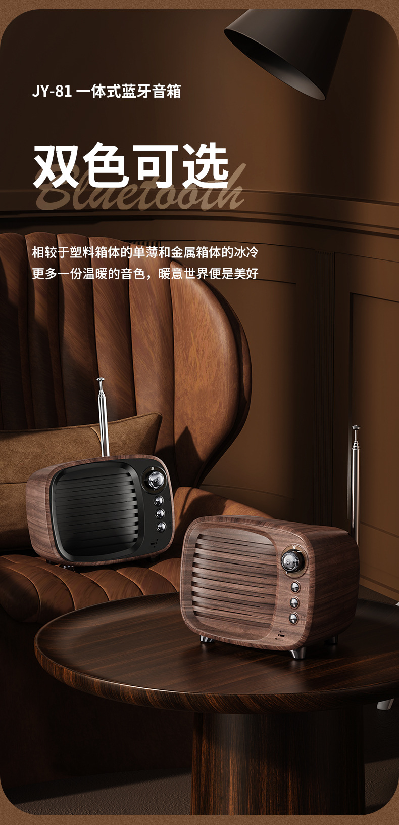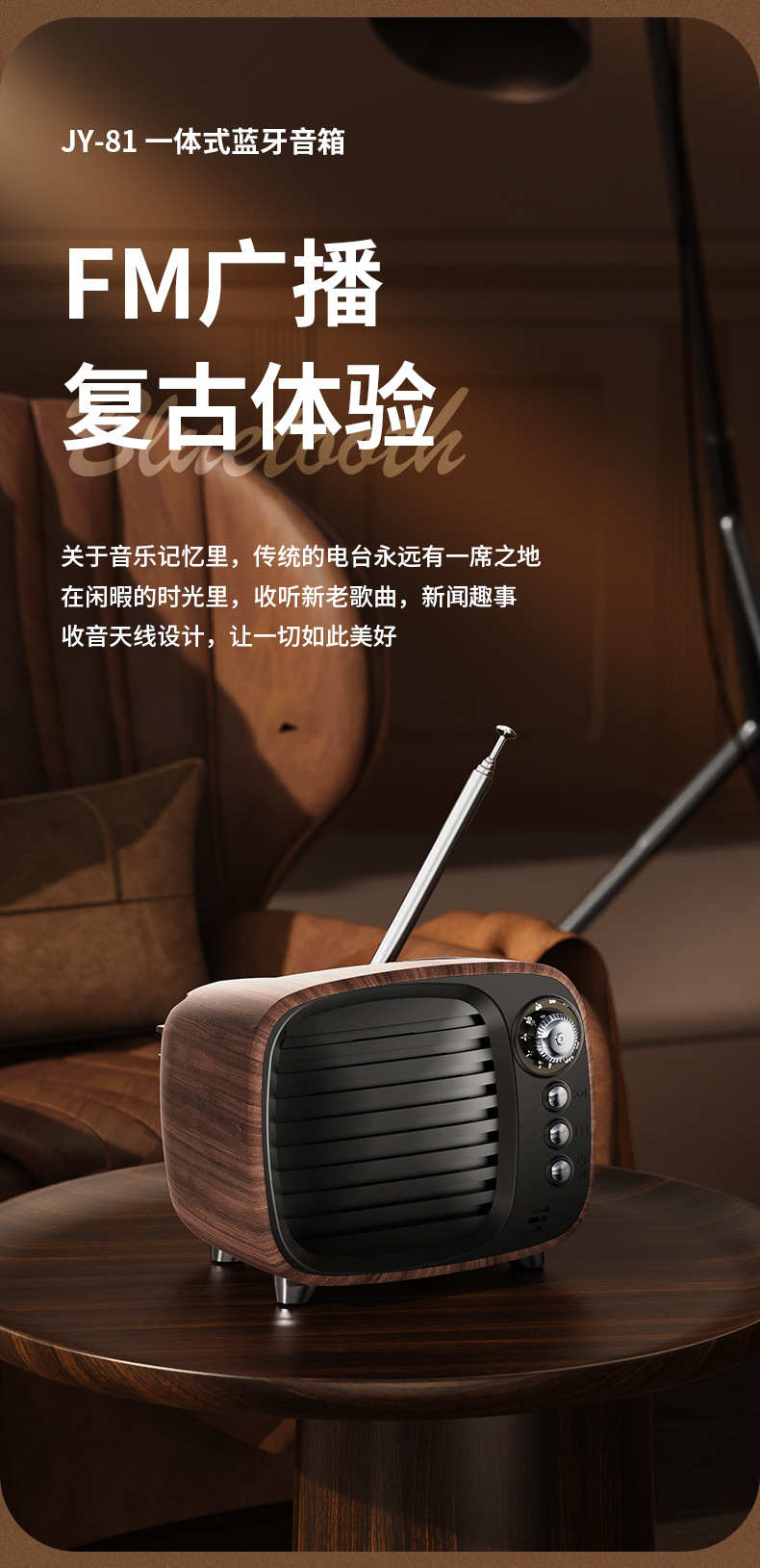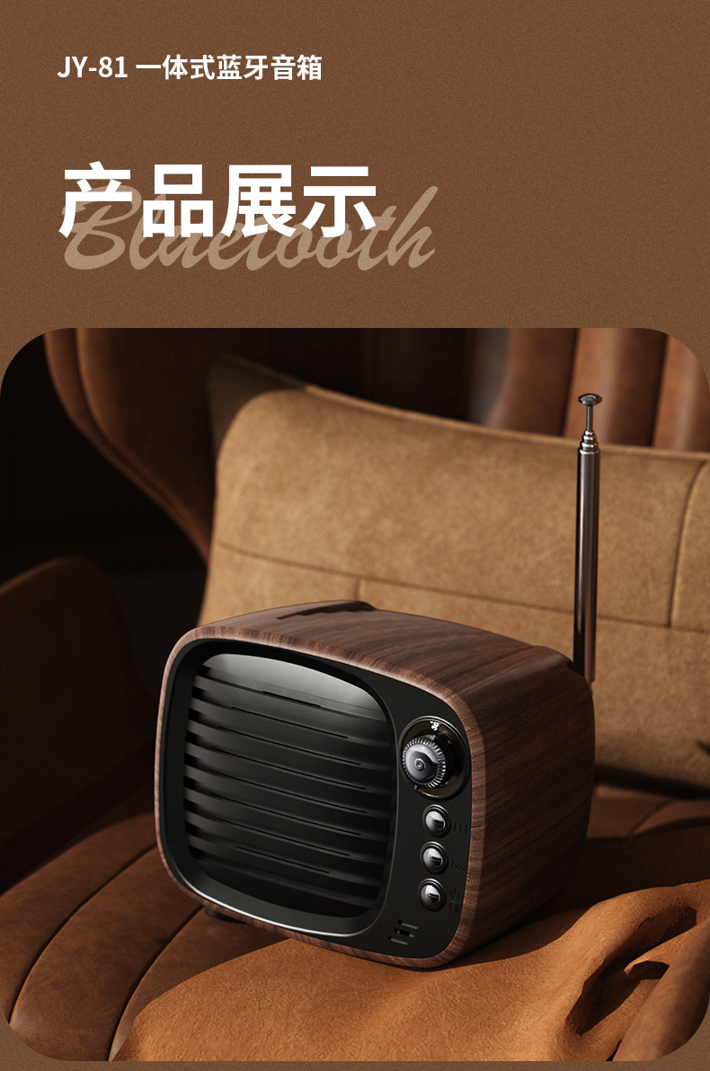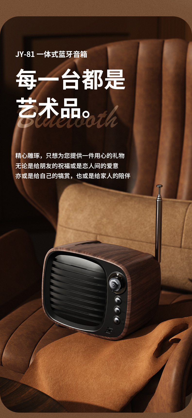 인기 JY81 레트로 블루투스 스피커 데스크탑 서브우퍼 FM 라디오 카드 무선 미니 TV 선물스토어 가기