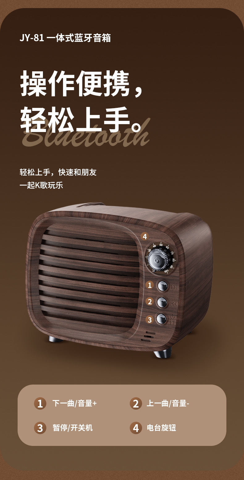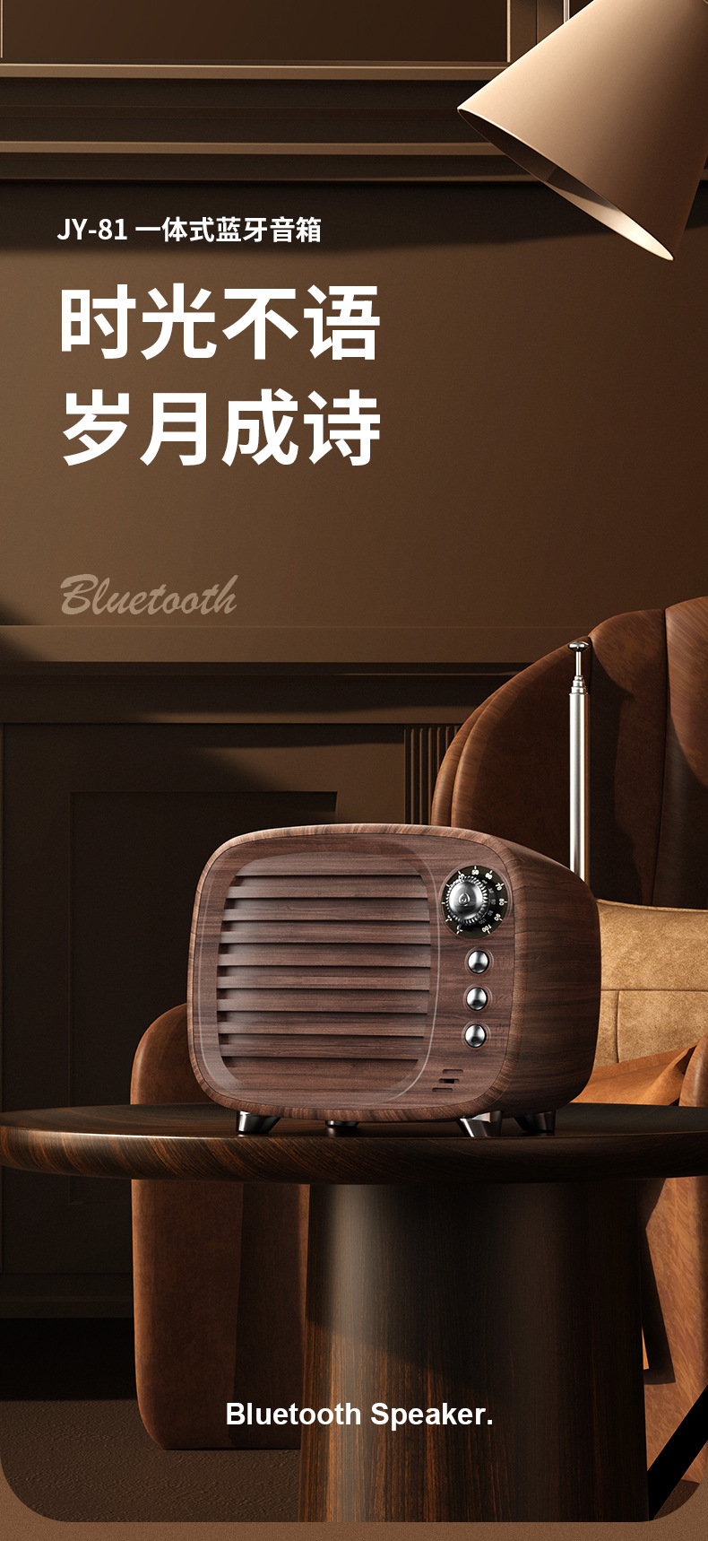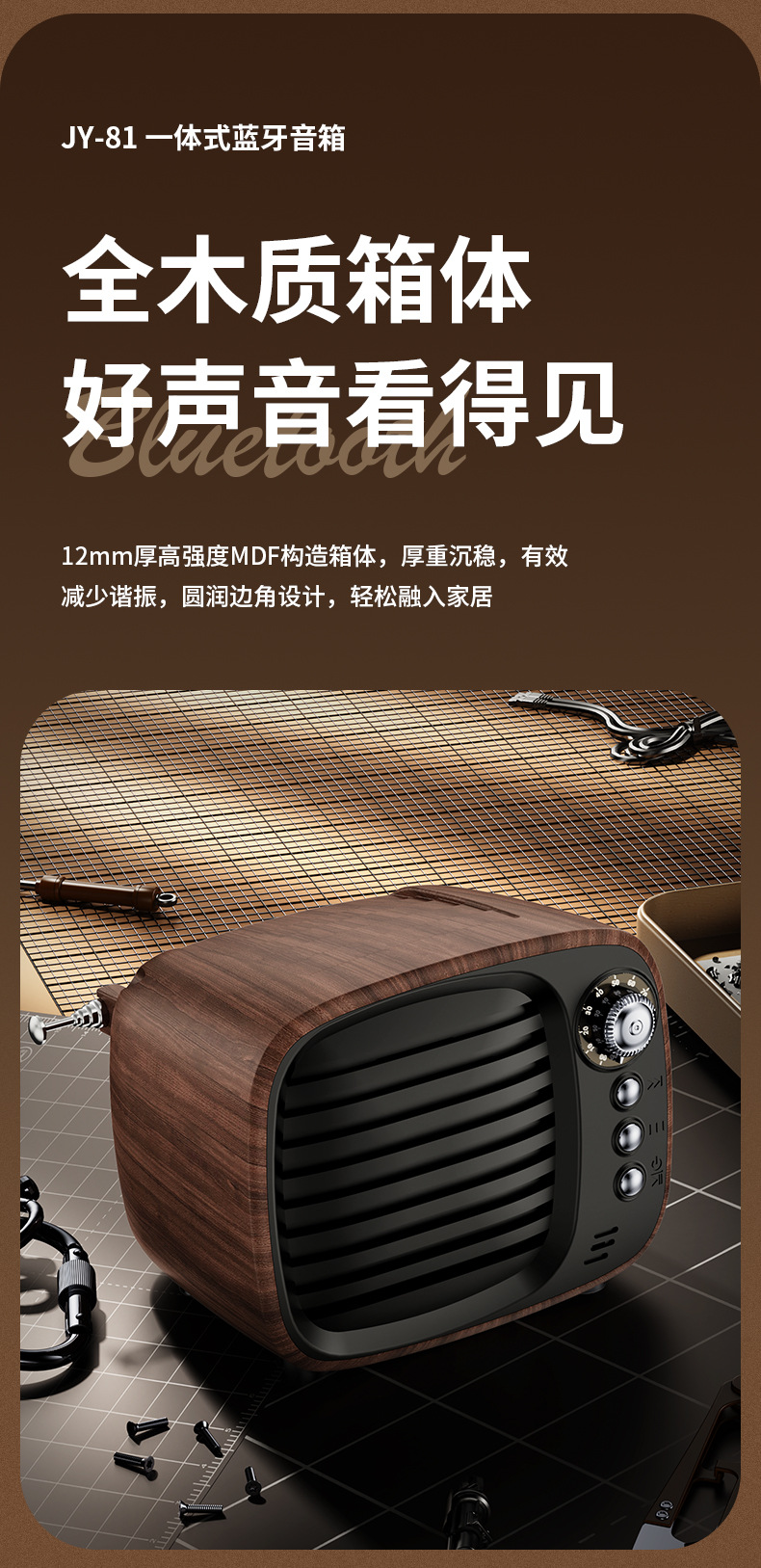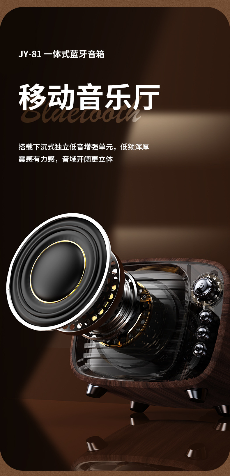 인기 JY81 레트로 블루투스 스피커 데스크탑 서브우퍼 FM 라디오 카드 무선 미니 TV 선물스토어 가기