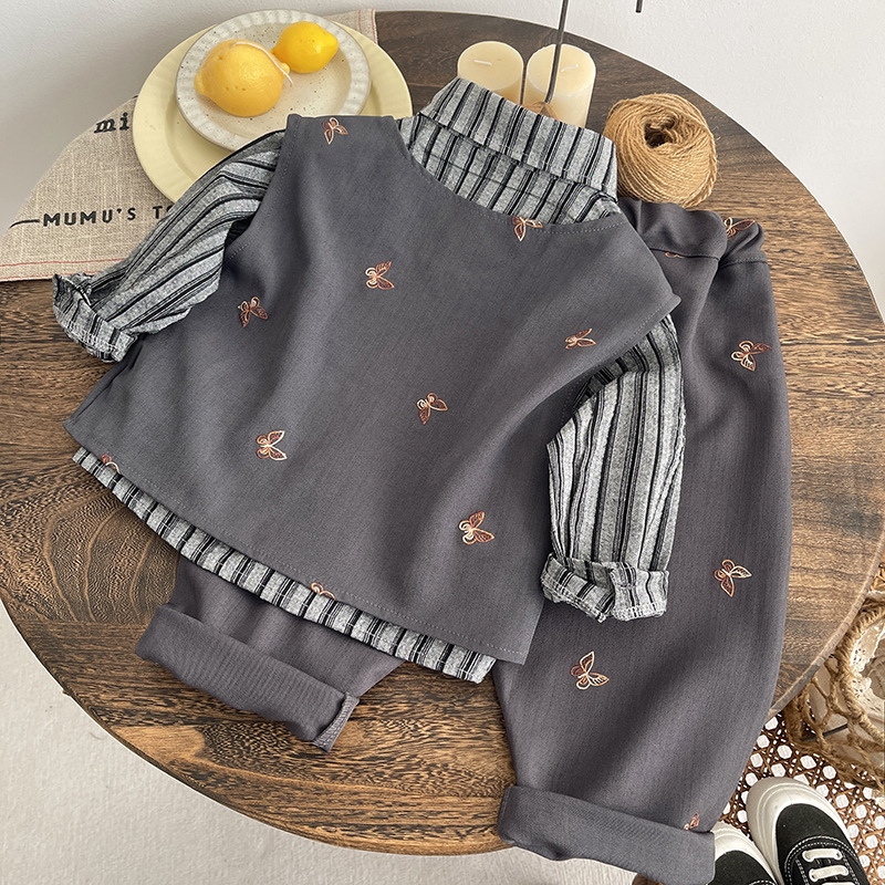 아기옷, 가을옷, 남아 한국식 멋스럽고 멋진 정장, 리본조끼, 남아용 3피스 세트, 봄, 가을 유행 정장