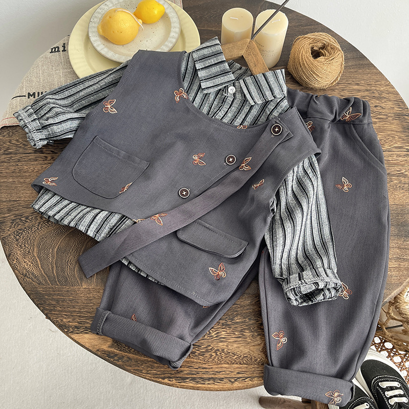 아기옷, 가을옷, 남아 한국식 멋스럽고 멋진 정장, 리본조끼, 남아용 3피스 세트, 봄, 가을 유행 정장스토어 가기