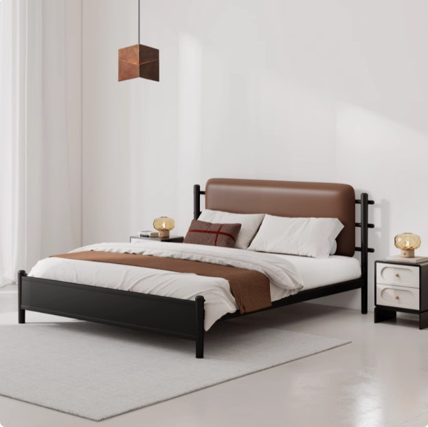 • 매트리스가 없는 매트한 블랙 + 브라운 가죽 소프트 등받이