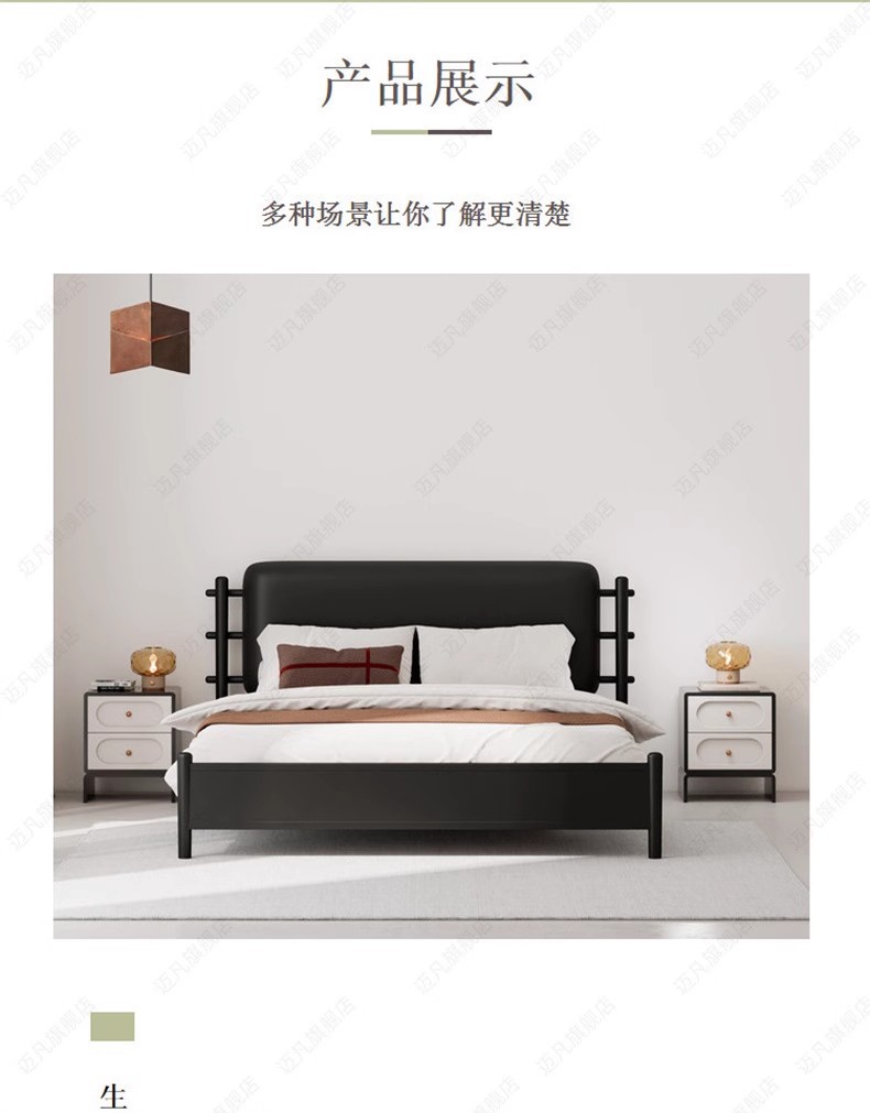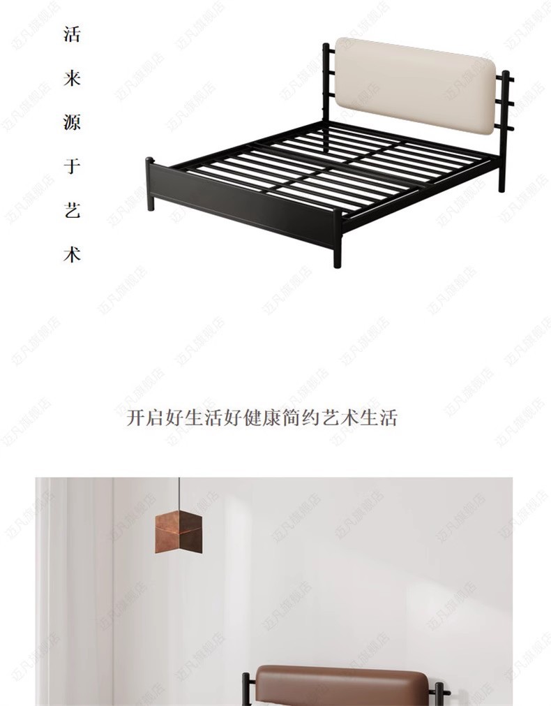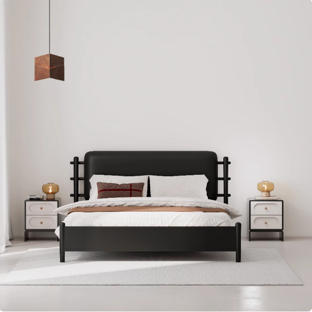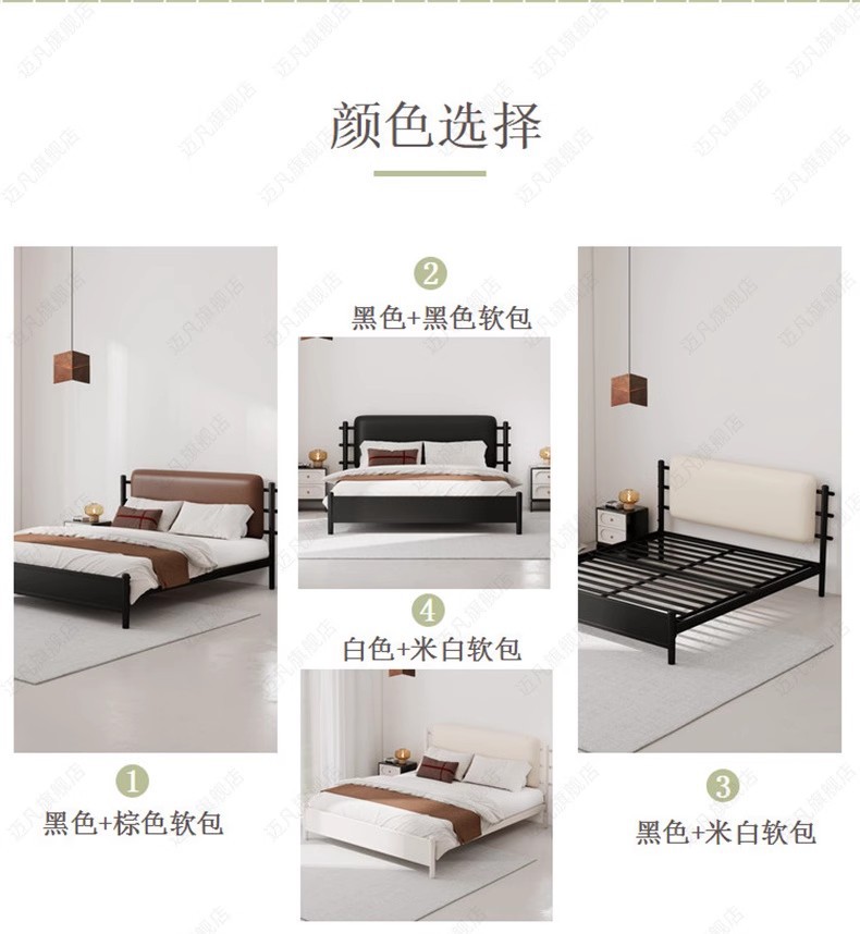 • 매트리스가 없는 매트한 블랙 + 오프화이트 가죽 소프트 등받이