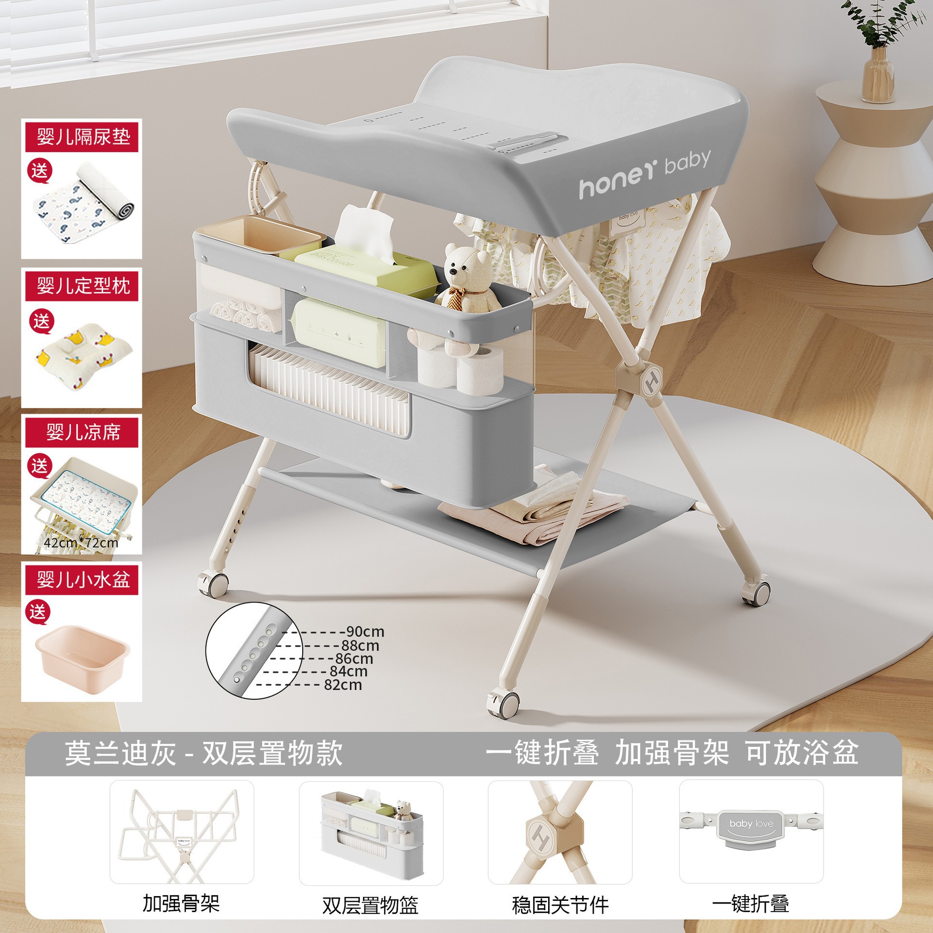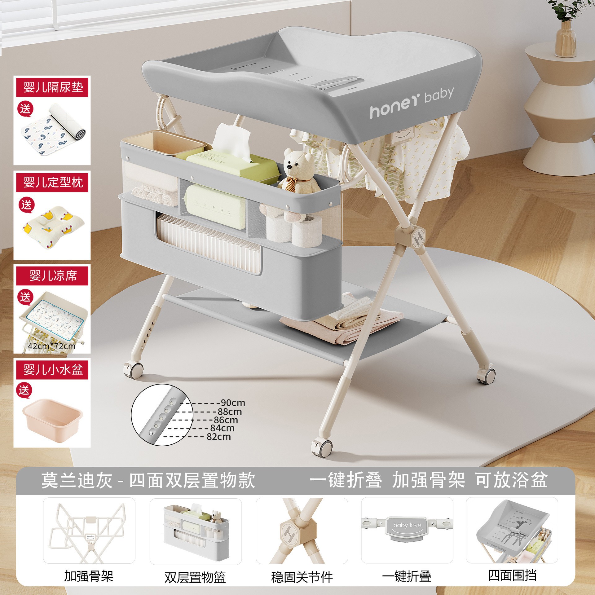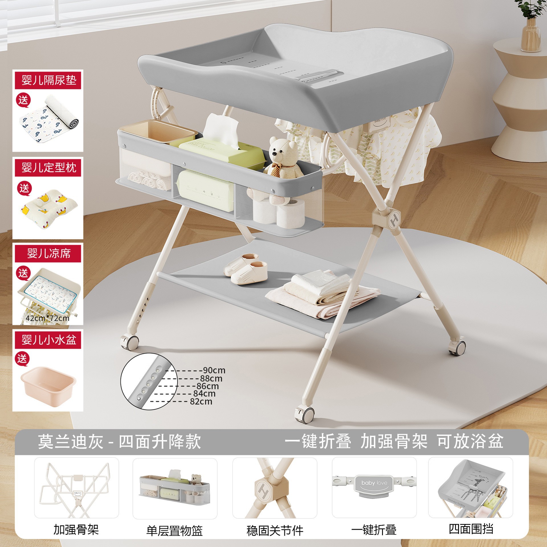 • KT-A. 그레이 [리프팅 모델] 5단 리프트 + 매트 + 기저귀 패드 + 모양의 베개 + 작은 세면대
