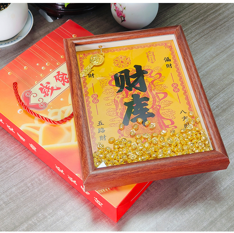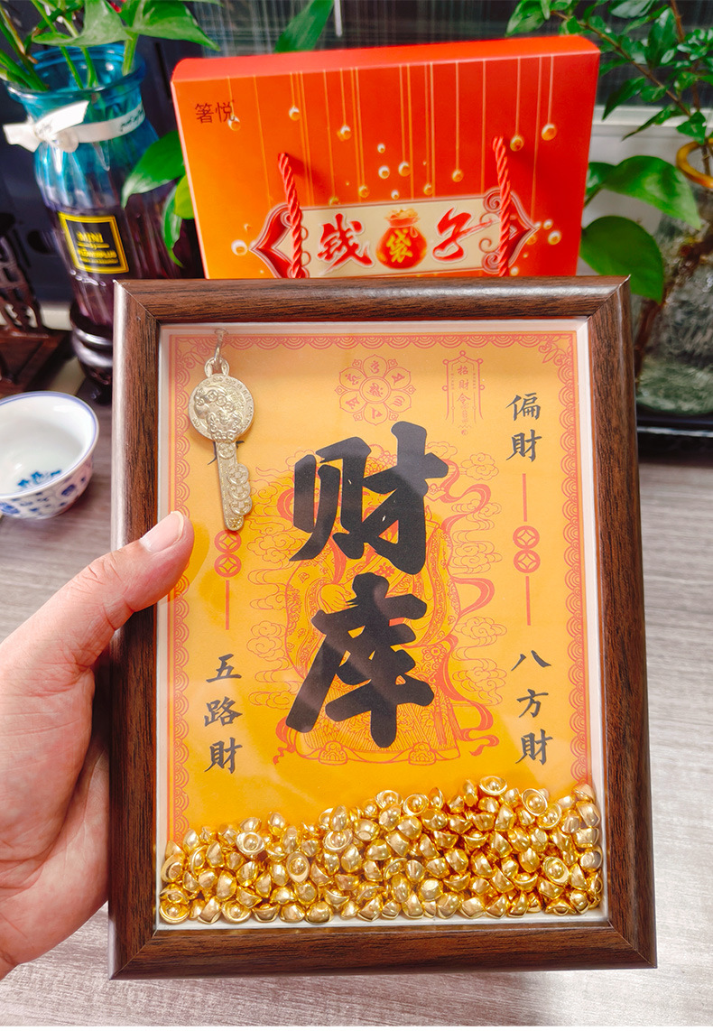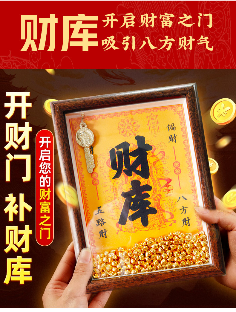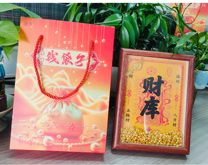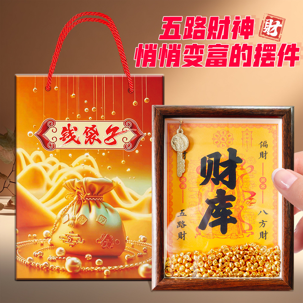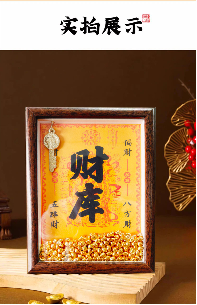 금고 노란색 부의 신 금고 사진 프레임 사무실 워크 스테이션 장식품 조디악 금 열쇠 부의 유치 테이블 세트스토어 가기