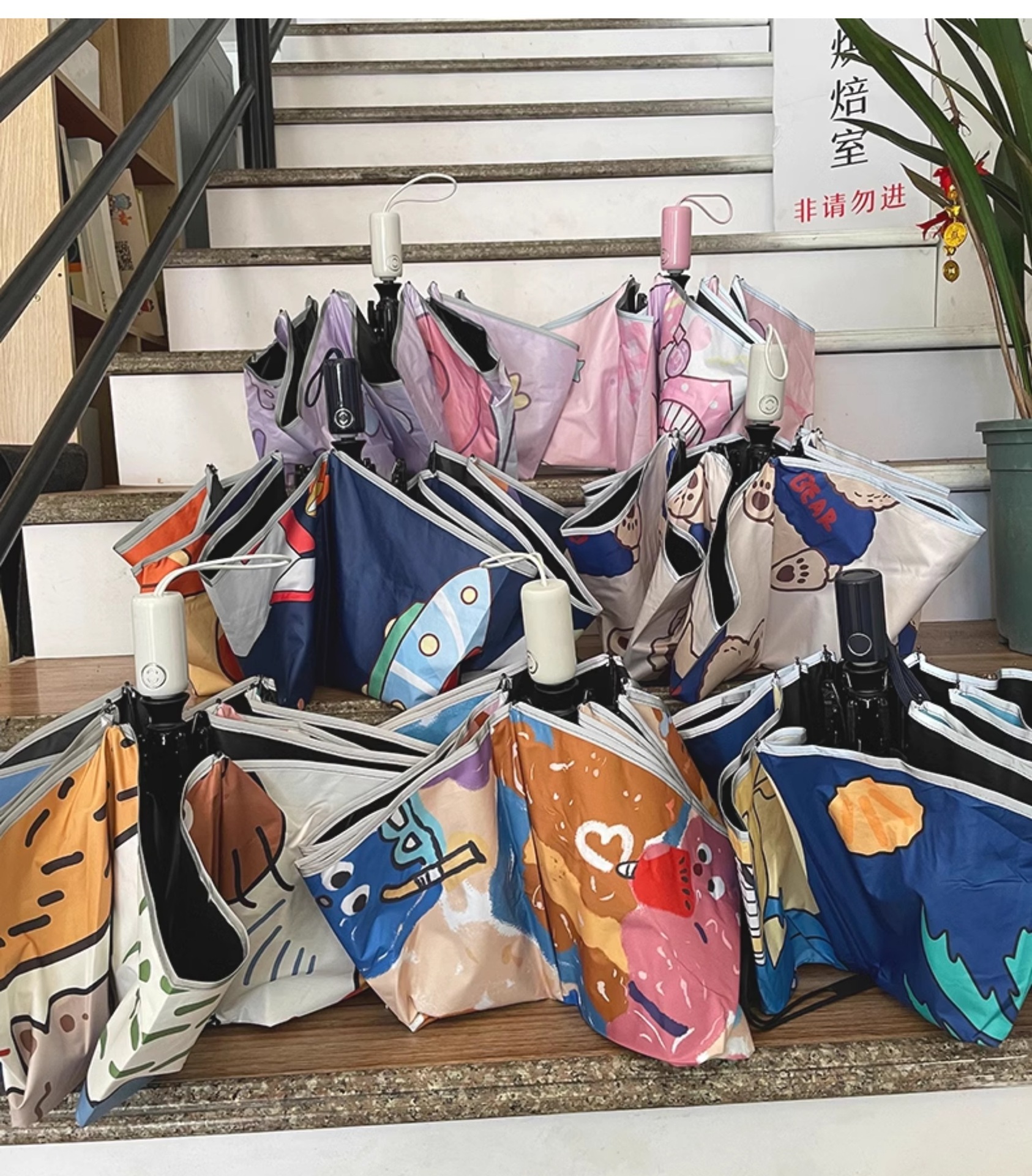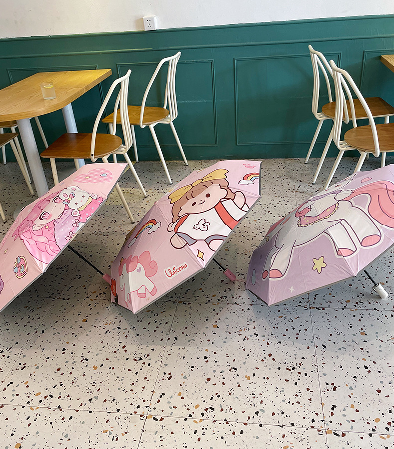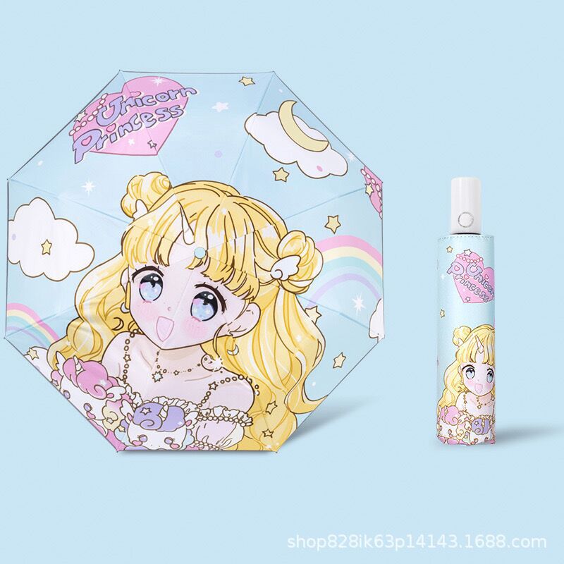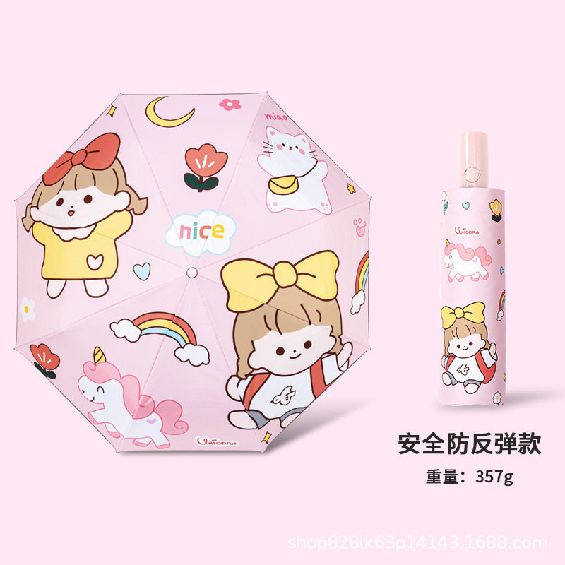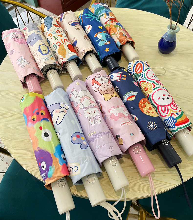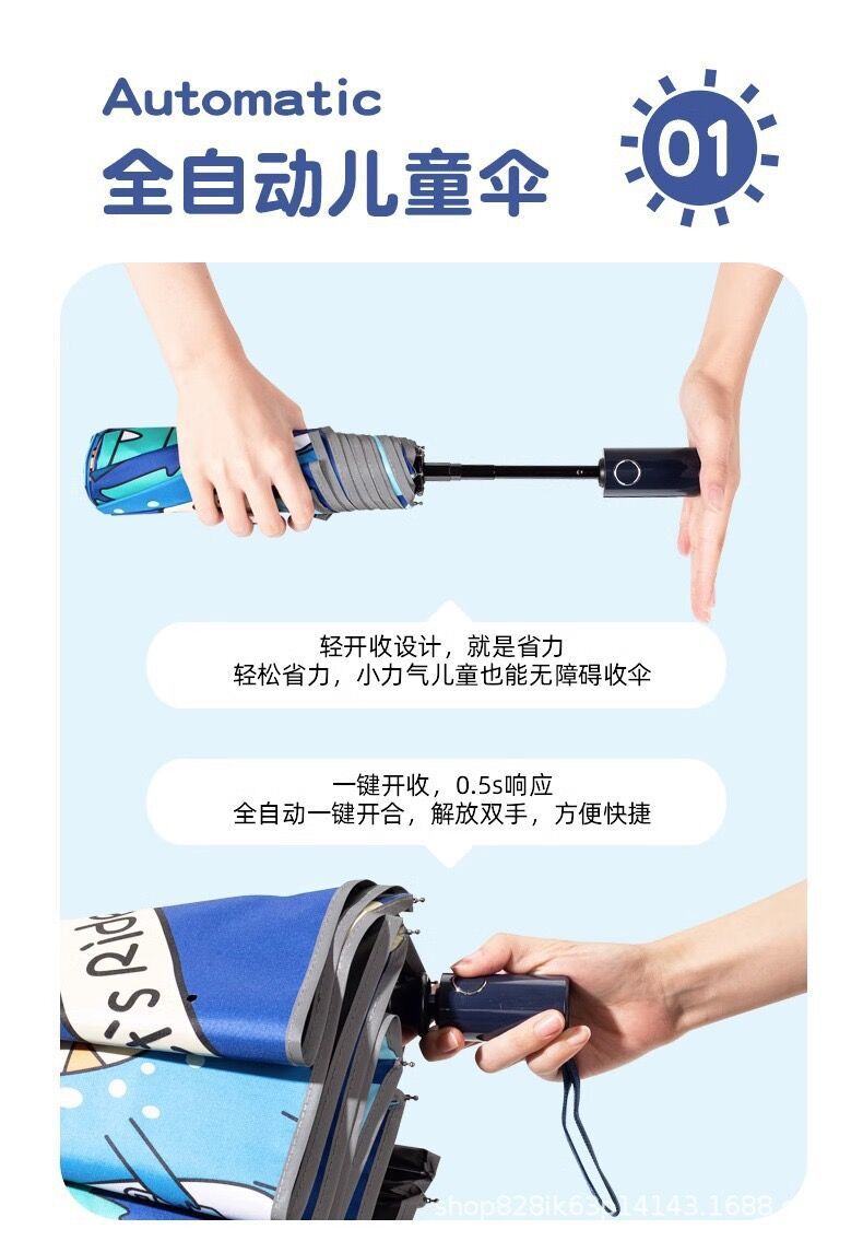 어린이 안전 반동 반사 스트립 만화 애니메이션 완전 자동 비닐 태양 보호 학생 비 또는 빛 접는 우산스토어 가기