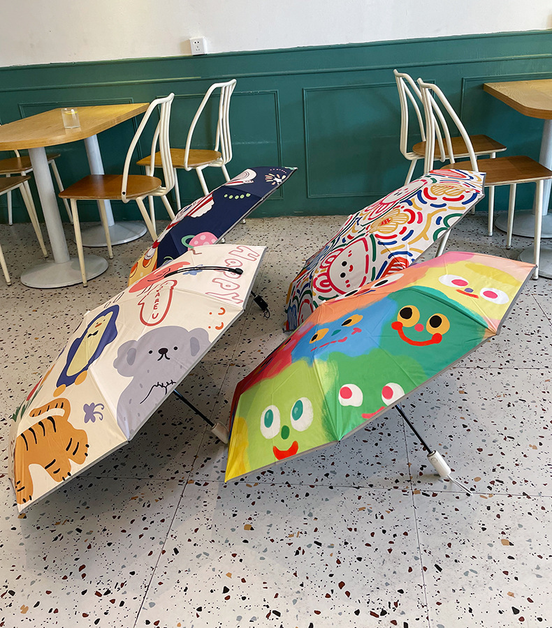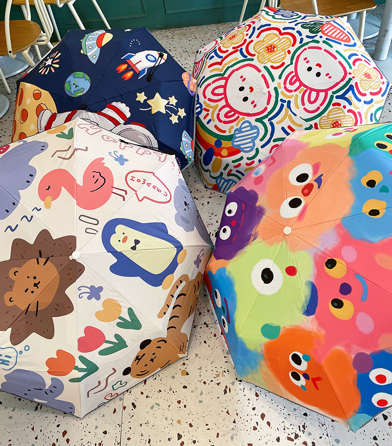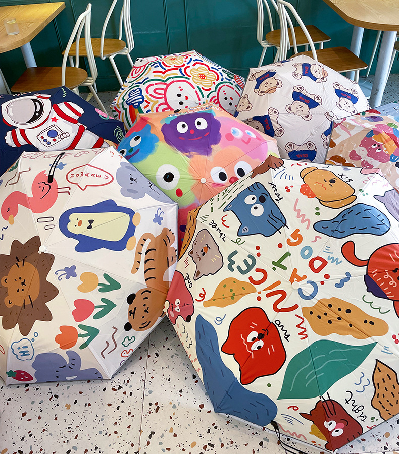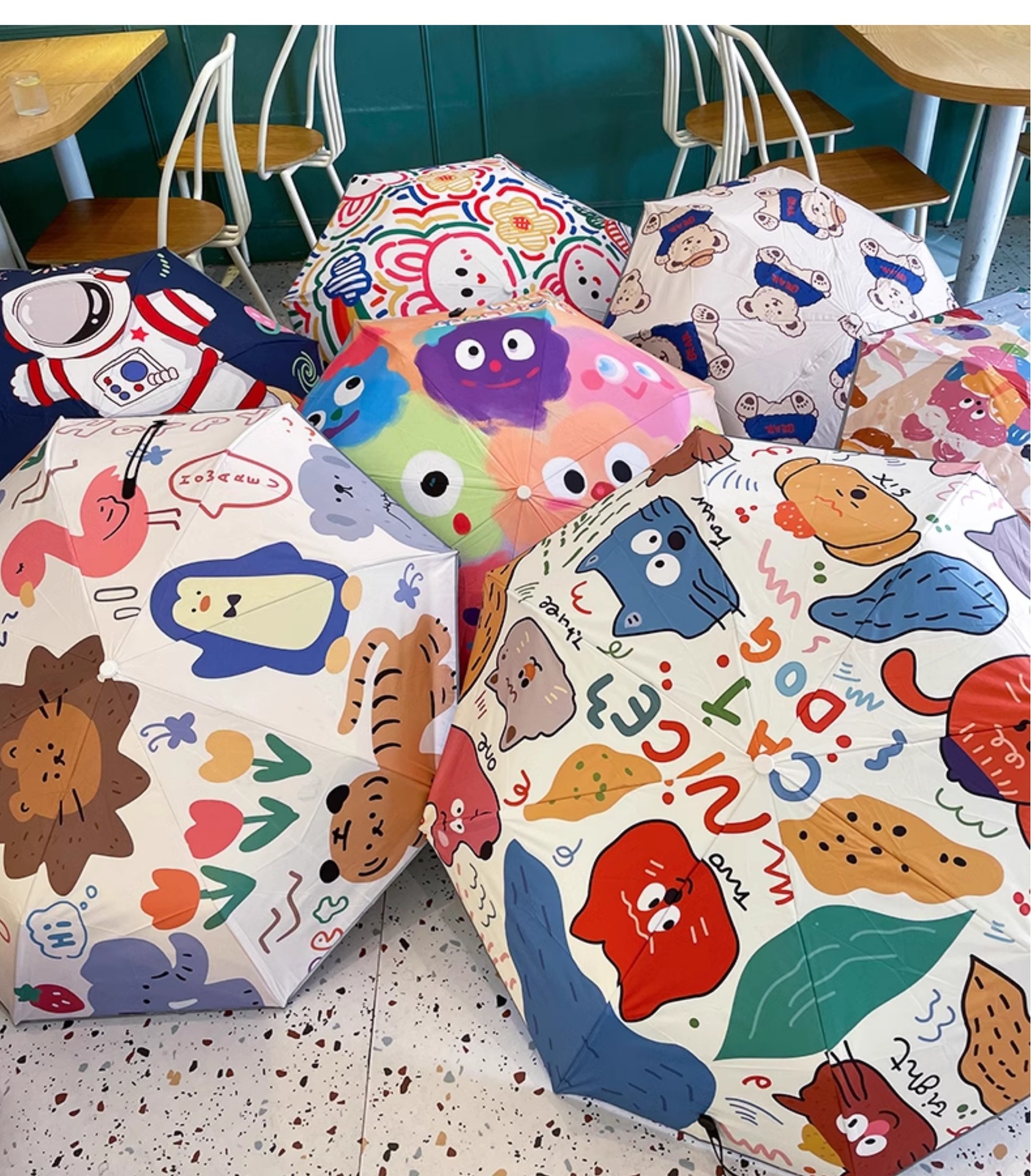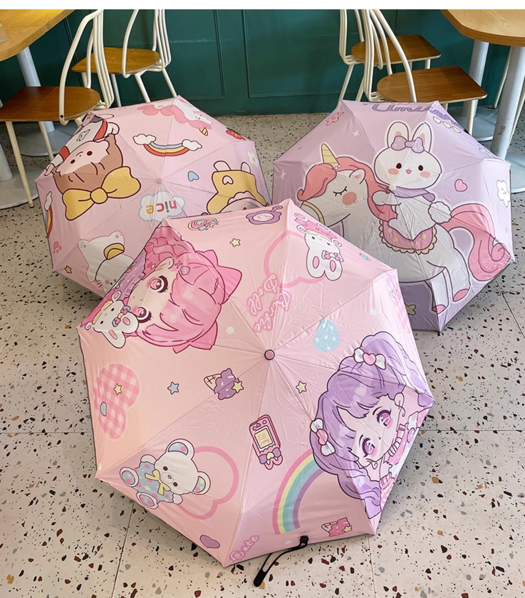 어린이 안전 반동 반사 스트립 만화 애니메이션 완전 자동 비닐 태양 보호 학생 비 또는 빛 접는 우산스토어 가기