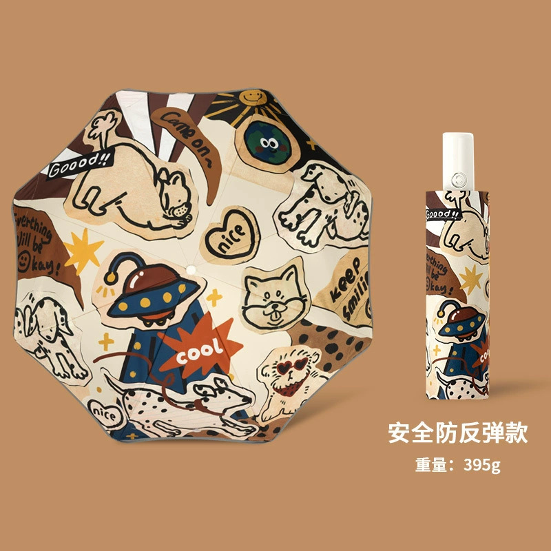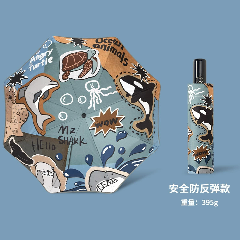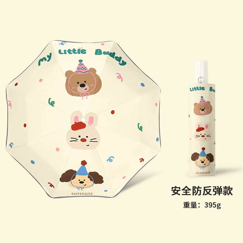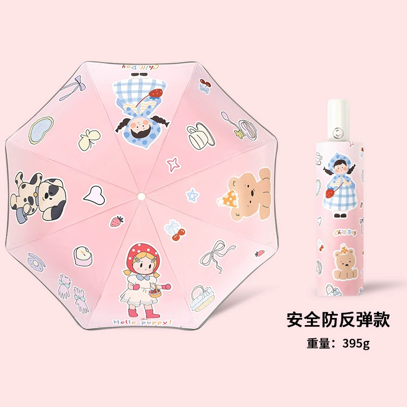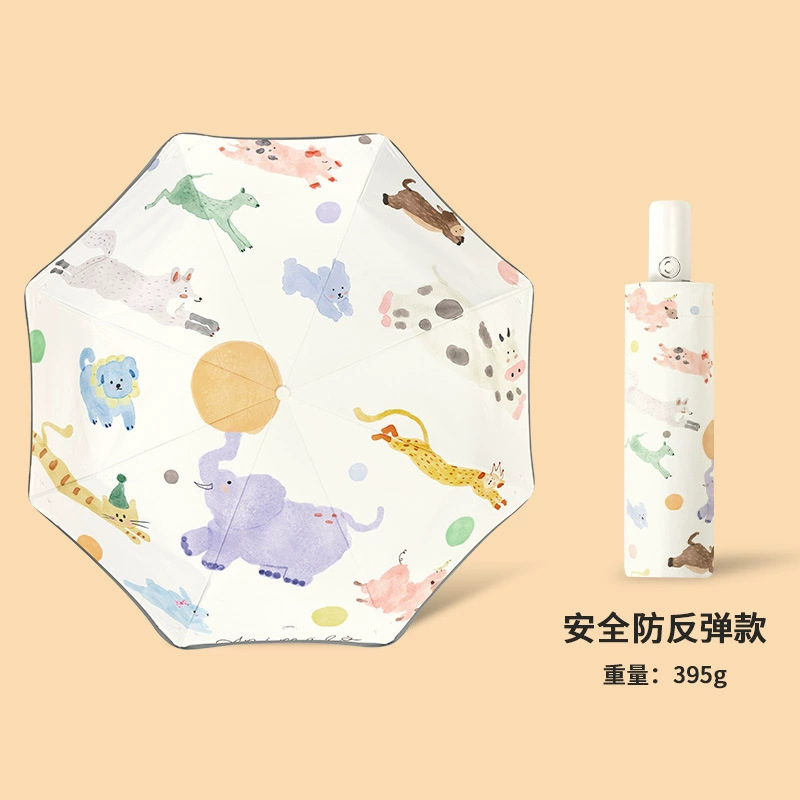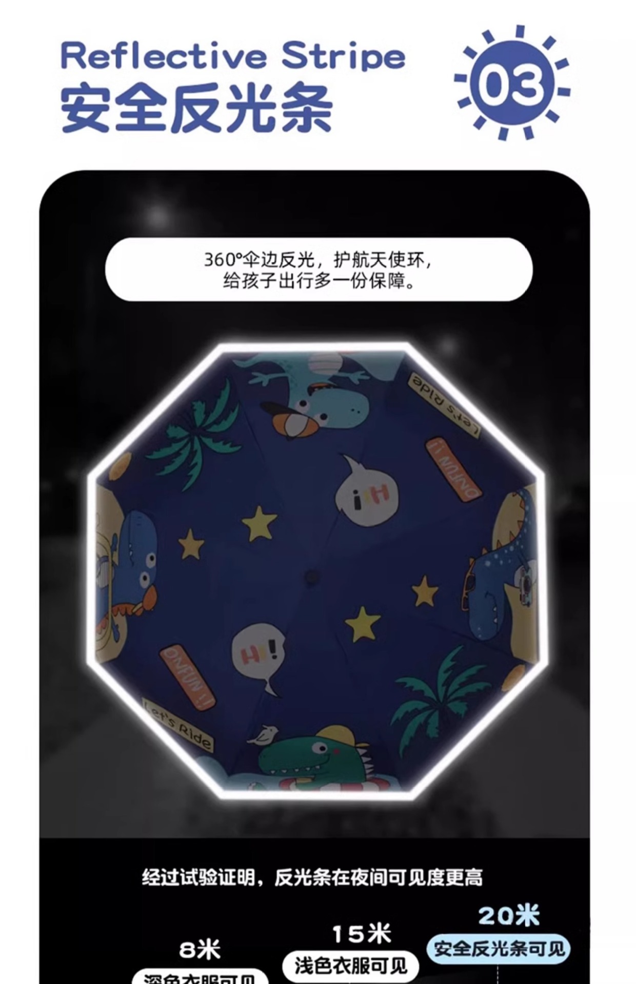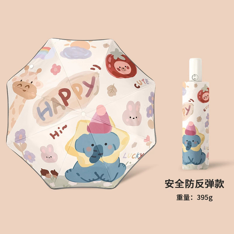 어린이 안전 반동 반사 스트립 만화 애니메이션 완전 자동 비닐 태양 보호 학생 비 또는 빛 접는 우산