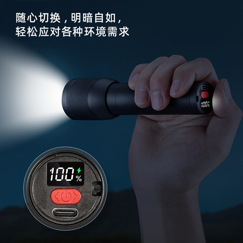 TEMU TIKTOK 디지털 디스플레이 강한 빛 야외 슈퍼 밝은 다기능 순찰 장거리 휴대용 유형-c 손전등