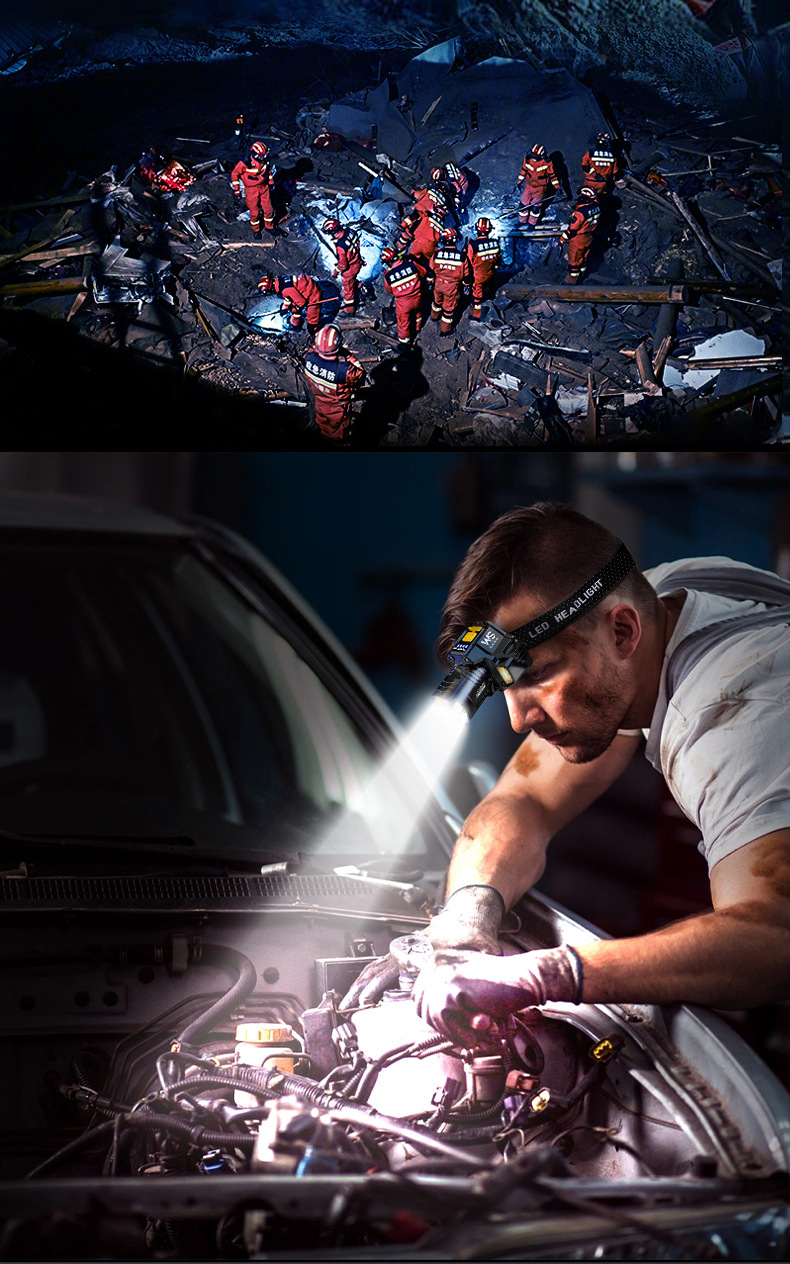 맞춤형 가공 헤드라이트, 매우 밝은 조명, 긴 배터리 수명, 낚시 야외 조명, 다기능 헤드라이트스토어 가기