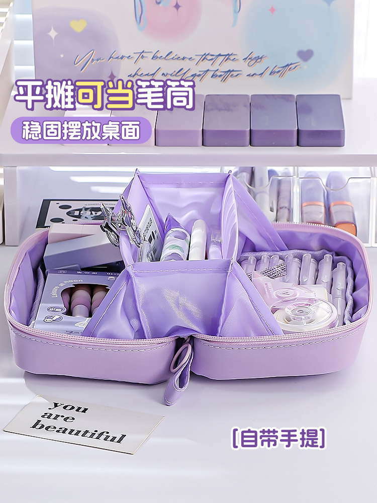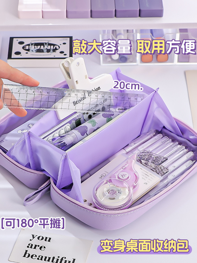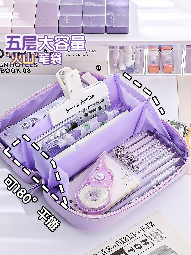 대용량 화산 투명 필통, 독특한 연필 케이스, 심플한 인스 스타일, 다층 초등학생 문구함, 수납함