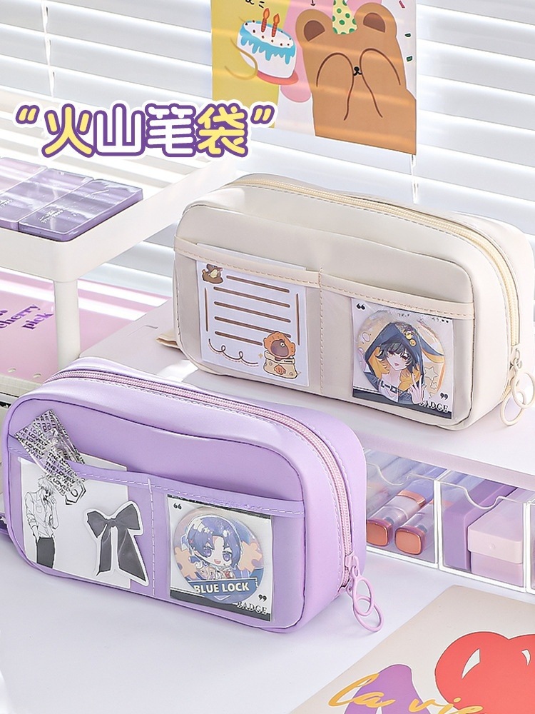 대용량 화산 투명 필통, 독특한 연필 케이스, 심플한 인스 스타일, 다층 초등학생 문구함, 수납함스토어 가기