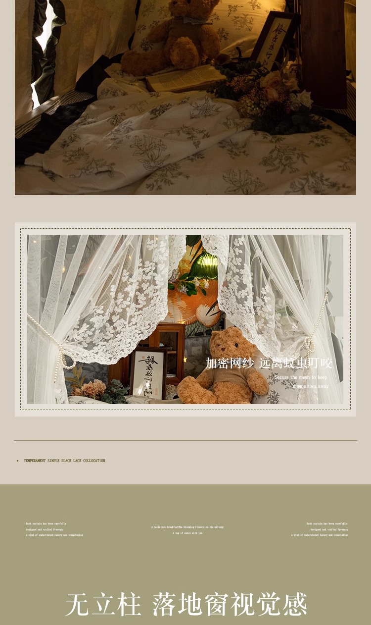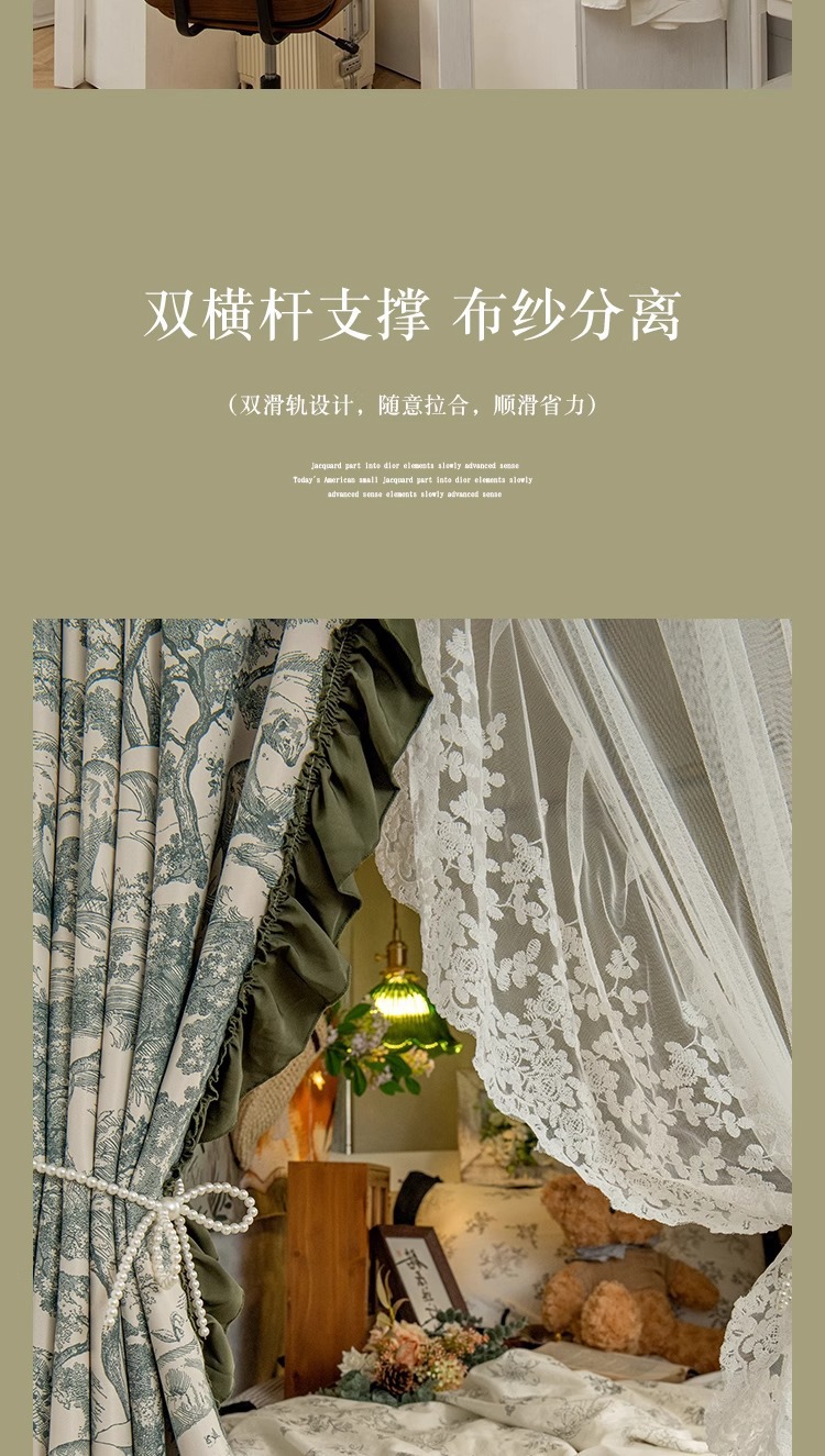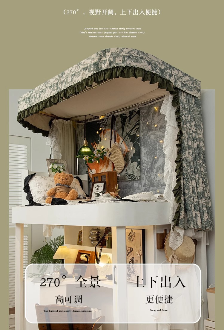 프렌치 침대 커튼 학생 기숙사 상단 레이스 차광 트랙 브래킷 침대 커튼 복고풍 기숙사 하단 침대 커튼