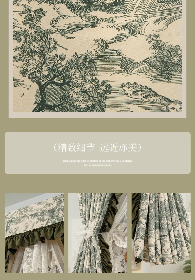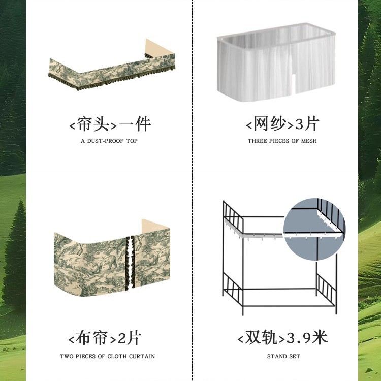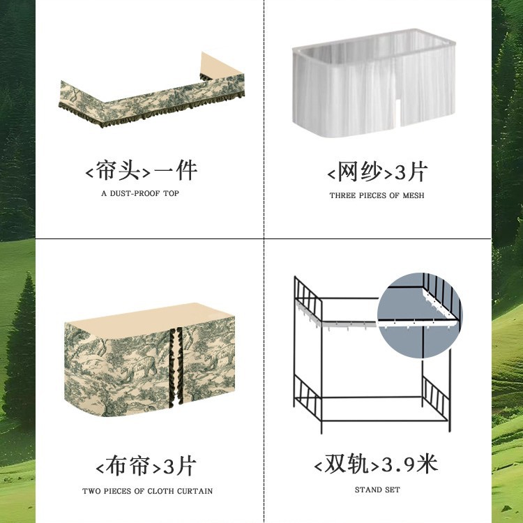 프렌치 침대 커튼 학생 기숙사 상단 레이스 차광 트랙 브래킷 침대 커튼 복고풍 기숙사 하단 침대 커튼스토어 가기