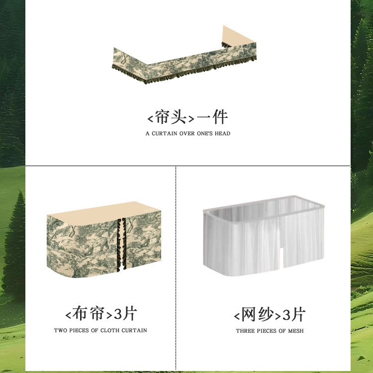 • [비예칭게 하부] 커튼 3개 + 실 3개 + 커튼헤드 + 이중레일