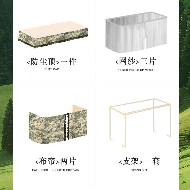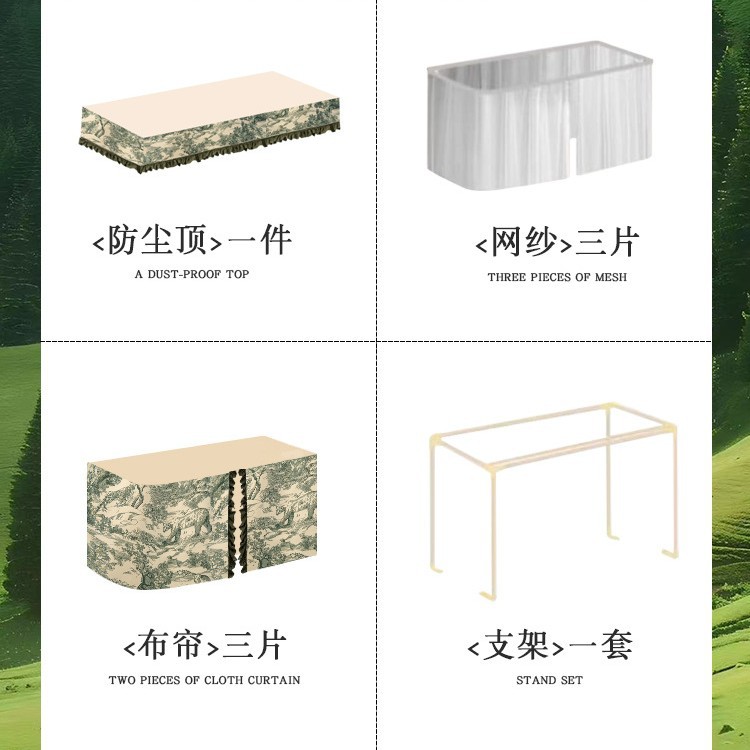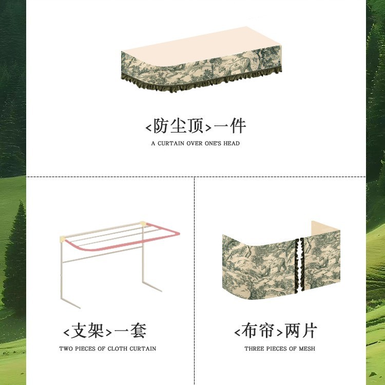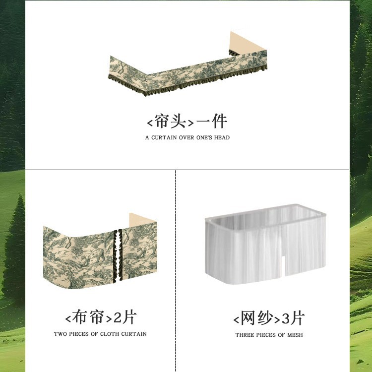 • [비예칭게 사각타입] 커튼 3개 + 상판 + 브라켓
