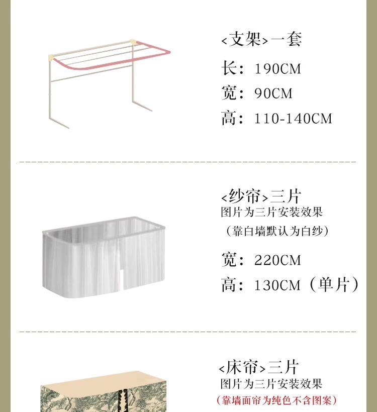 • 커튼 높이 1.5m [침대 ≤ 1m에 적용 가능]