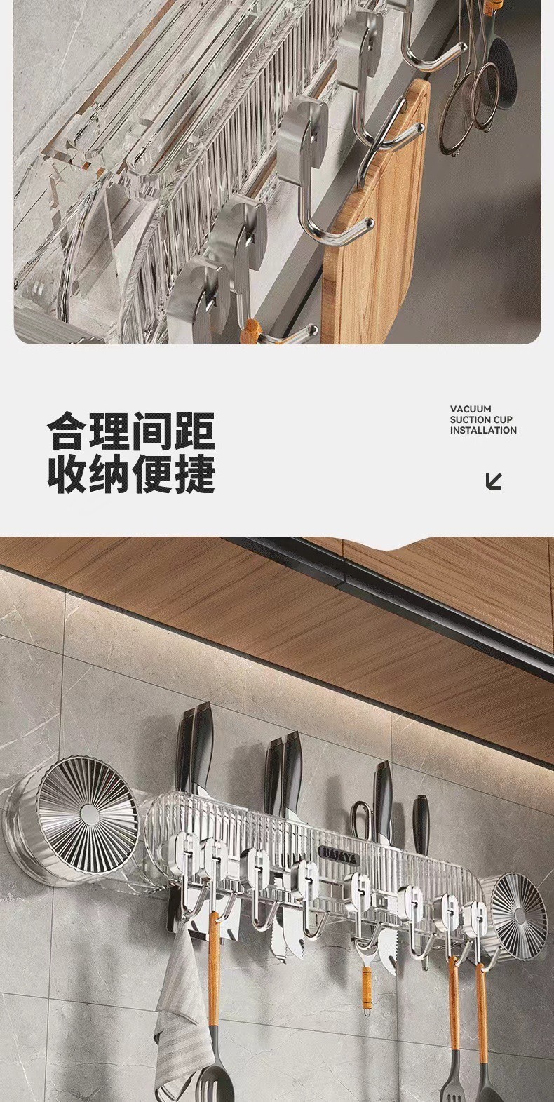 주방 후크, 펀치 없는 주걱, 벽걸이형 알루미늄 펜던트 후크, 스푼 수납 선반, 펀치 후크, 주방 및 욕실 칼 홀더스토어 가기