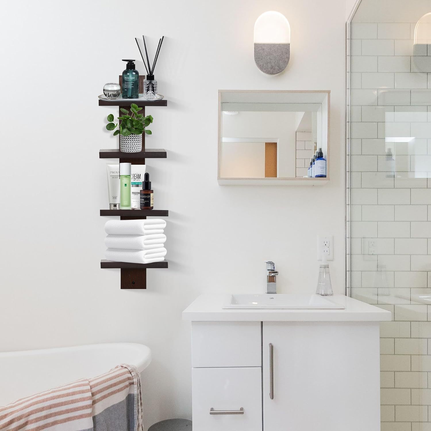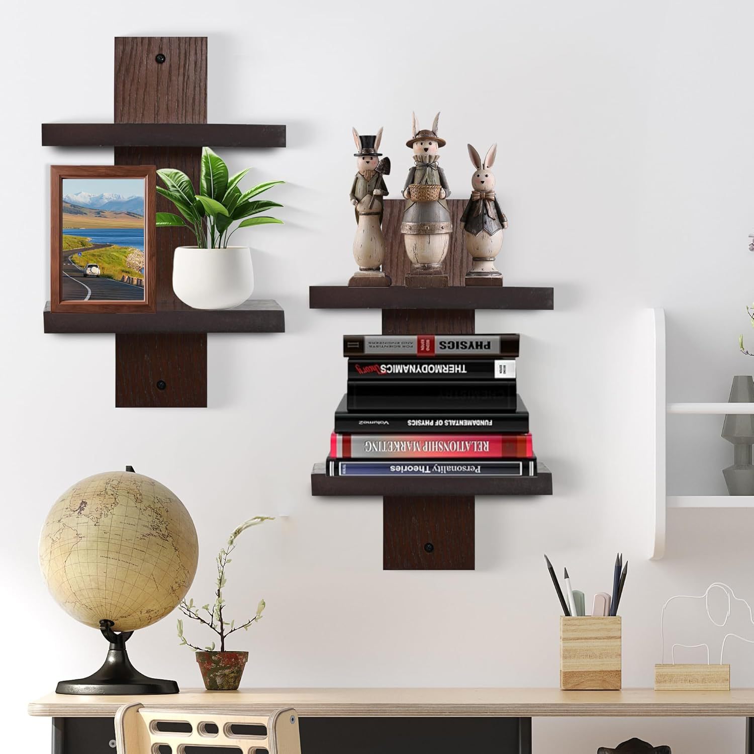 수직 벽 선반 나무 선반 기둥 모양의 플로팅 선반 쌓을 수있는 장식 선반 현대 홈 장식 주최자 스토리지 랙