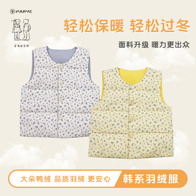 소년과 소녀 90 화이트 오리 다운 조끼 겨울 두꺼운 따뜻한 코트 어린이 만화 프린트 조끼스토어 가기