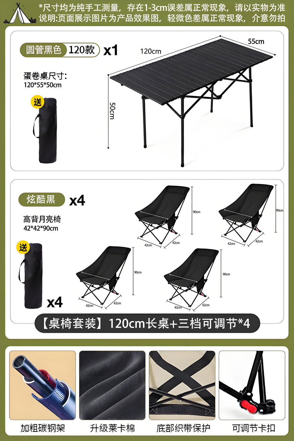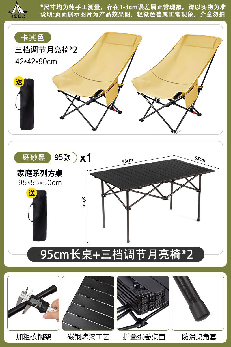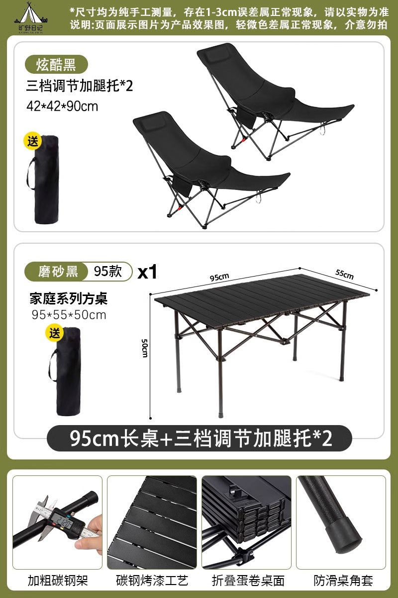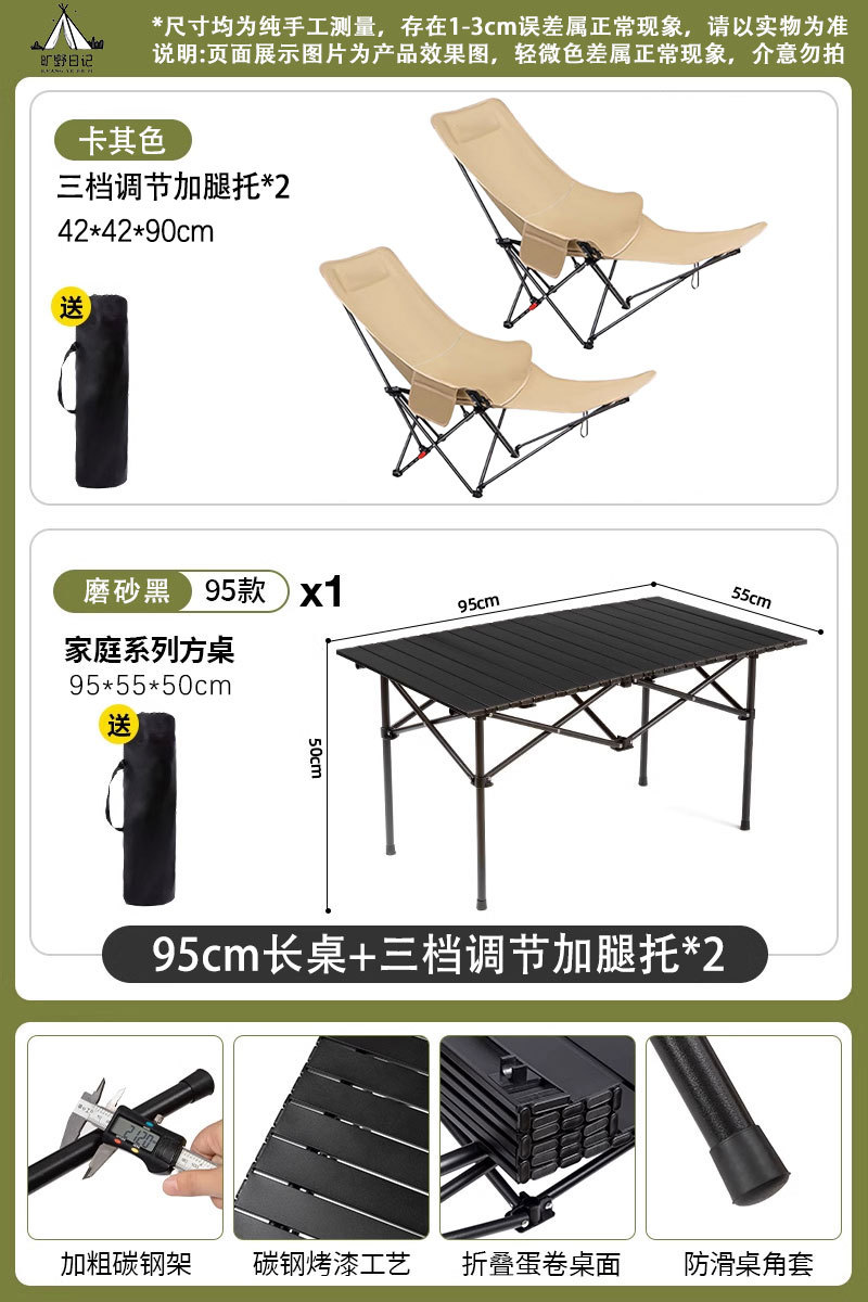 • [2인 여행] 95cm 매트 블랙 롱 테이블 + 3단 - 카키색 다리 받침대 포함*2