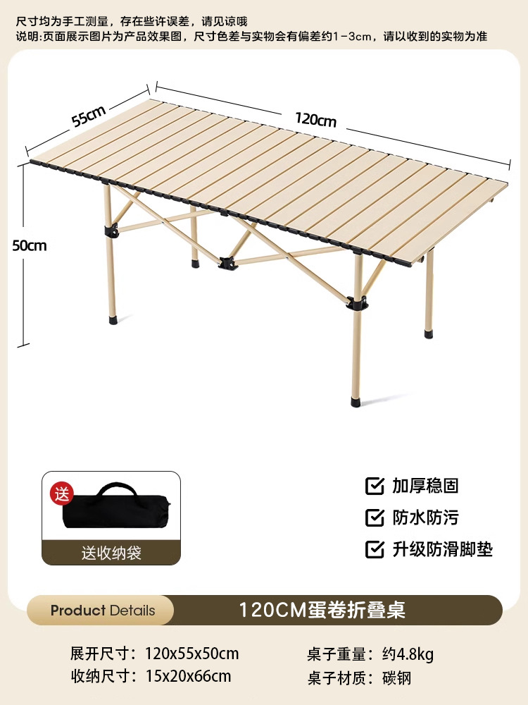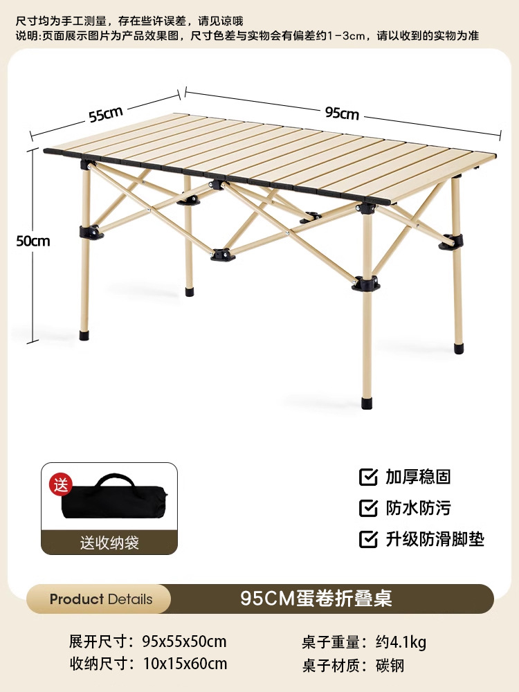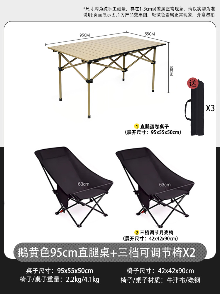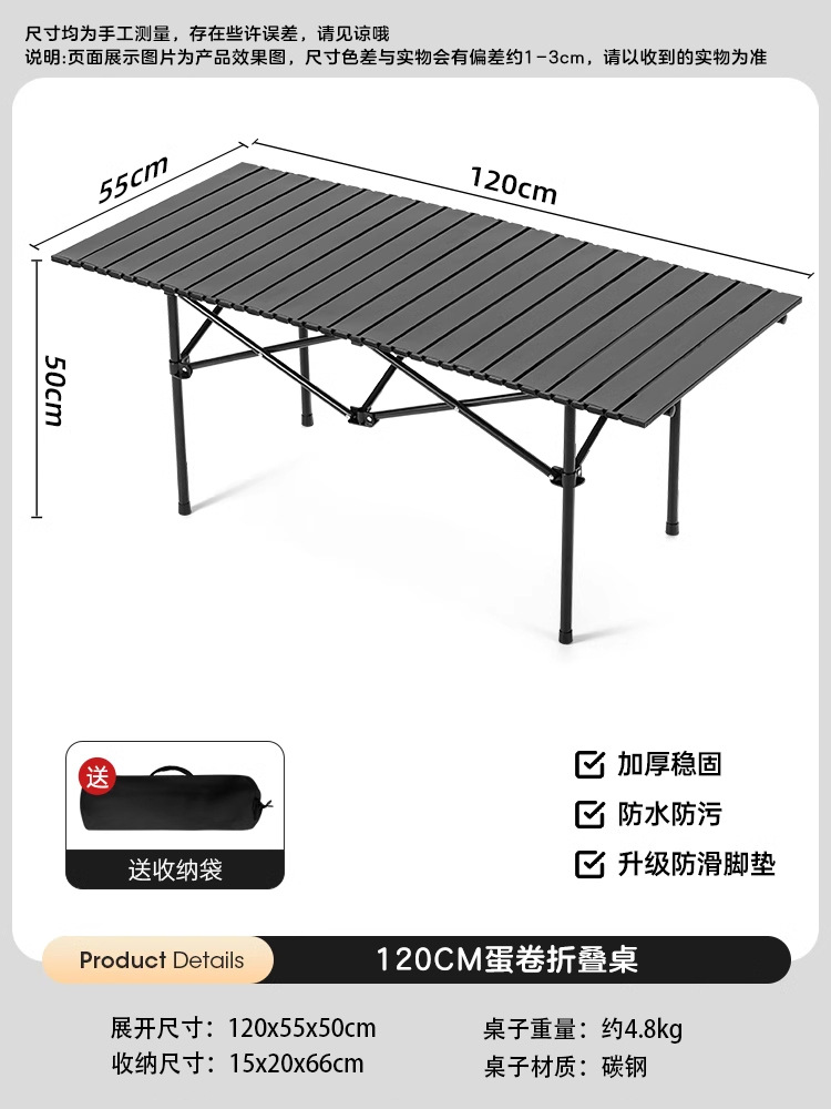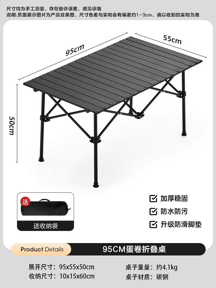 • [2인 여행] 95cm 매트 블랙 롱 테이블 + 3단 - 카키색 다리 받침대 포함*2