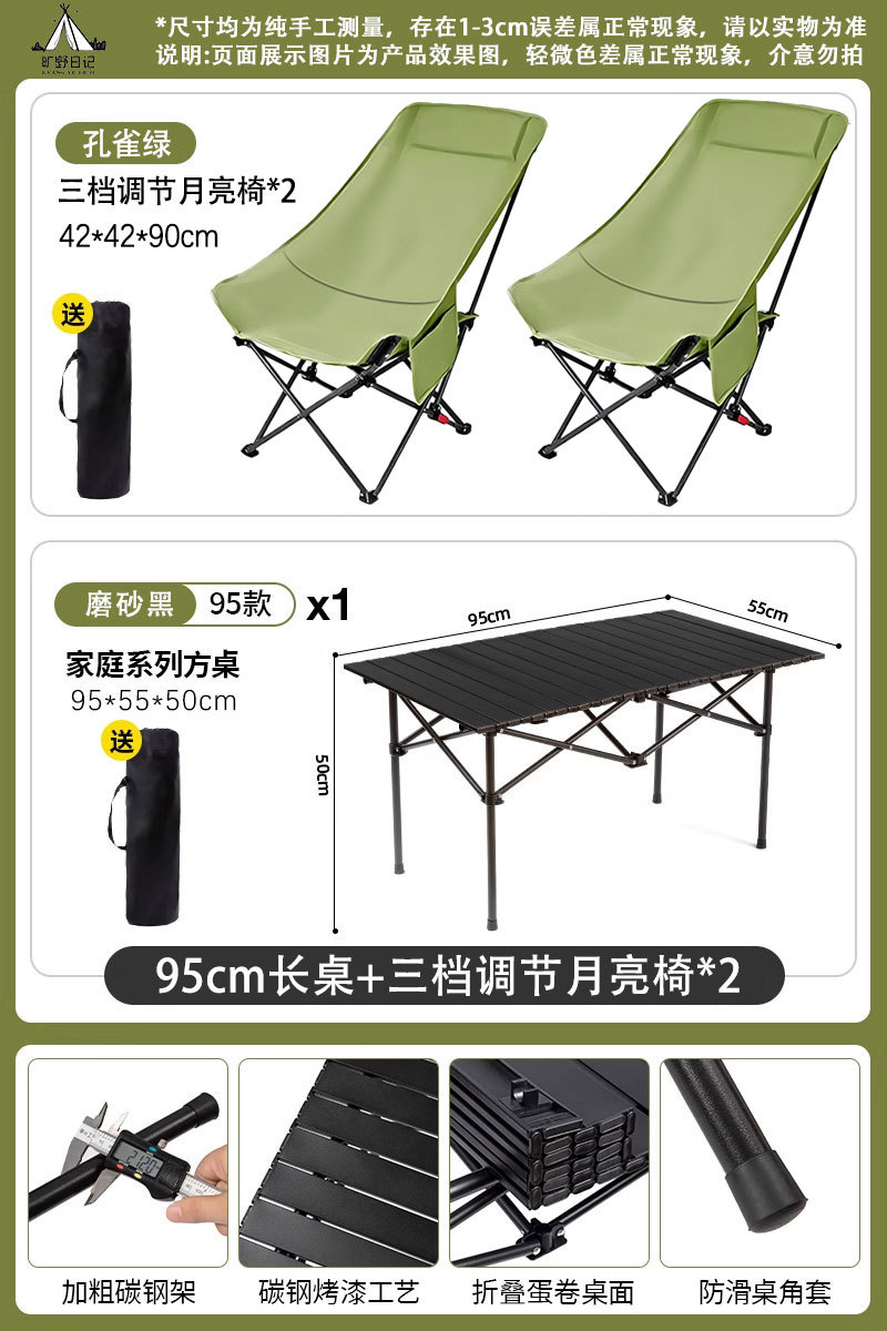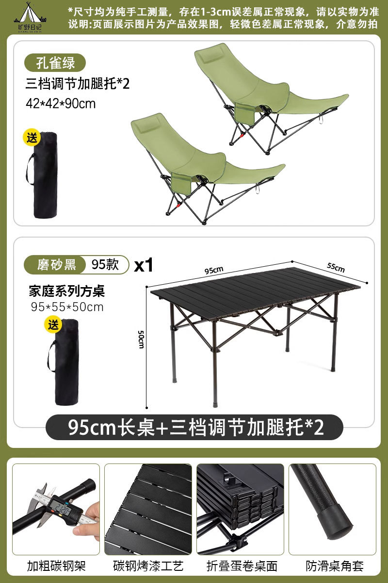 • [2인 여행] 95cm 매트 블랙 롱 테이블 + 3단 - 다리 받침대 포함, 그린*2