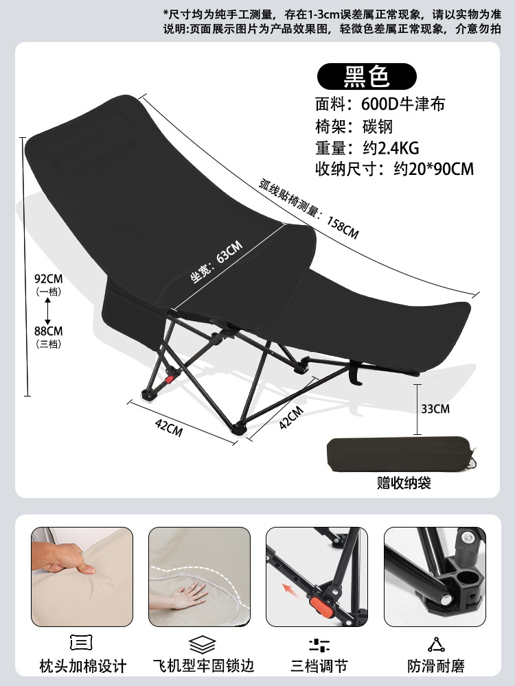 • 3단계 조절 가능 - 우아한 블랙 [앉거나 누울 수 있음]