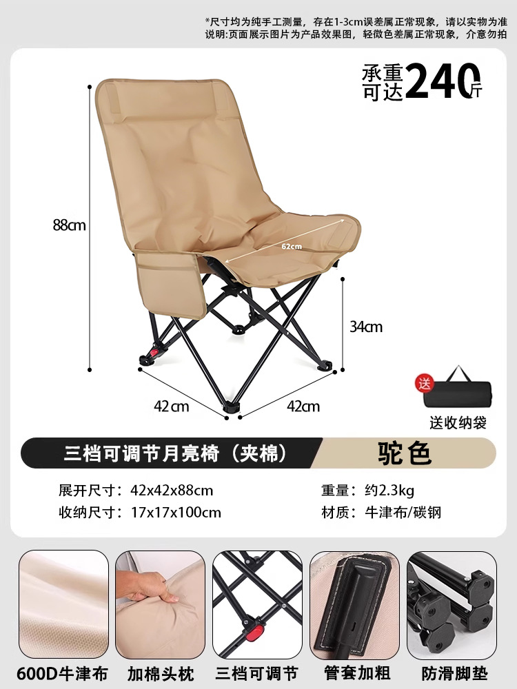 등받이가 높은 야외 접이식 의자, 접이식 달 의자, 휴대용 점심 시간 사무실 캠핑 소파, 게으른 안락 의자스토어 가기