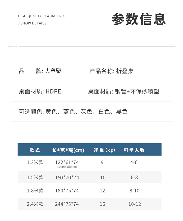 • 1.8m 접이식 파란색 강화 버전