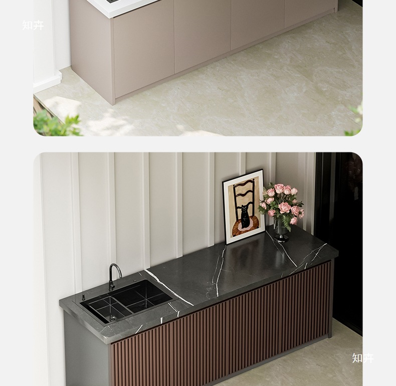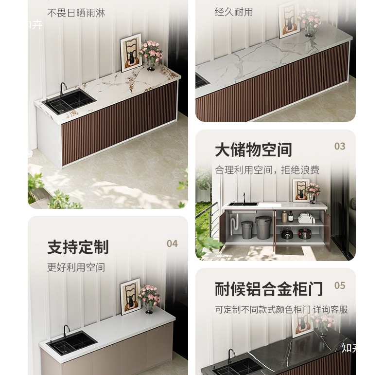 야외 조작대, 야외 안뜰, 알루미늄 합금 손씻기 싱크대, 슬레이트 세면대 일체형 홈 발코니 캐비닛 수납 캐비닛